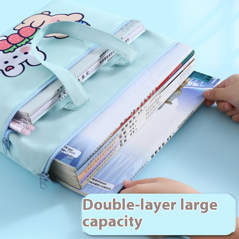 Cute Student Cartoon Hand-held Document Bag Oxford Cloth A4 Double-layer Document Bag Zipper Bag Information Bag Tutorial Bag
