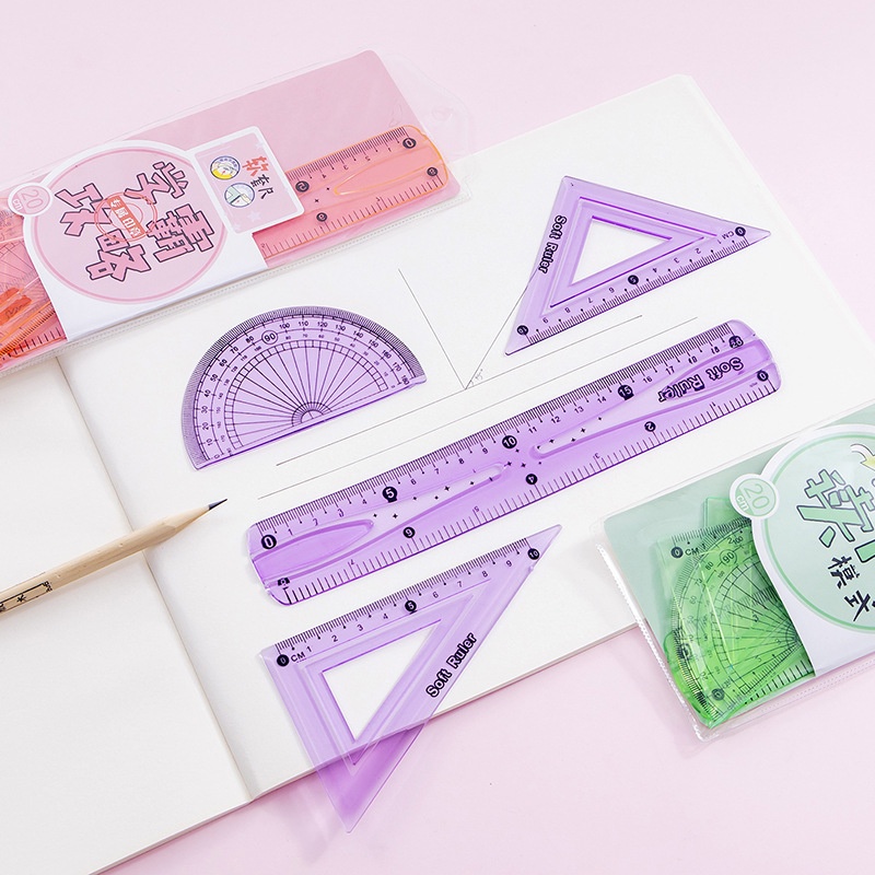 Creative Soft Ruler Primary School Students Special Soft Ruler Set Ruler Cartoon Ruler Four-piece Ruler Triangle Ruler Angle Measurement