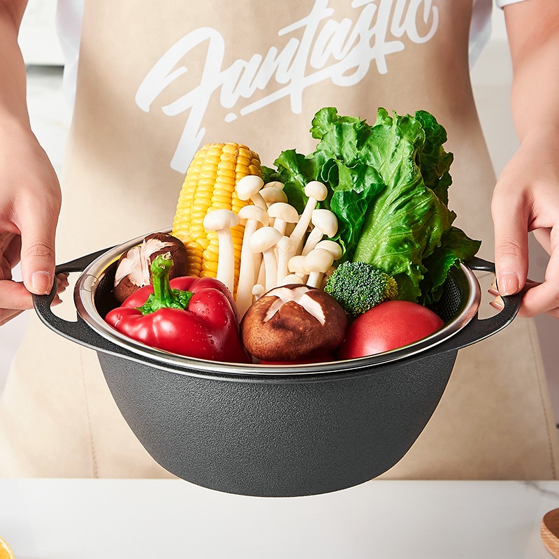 Kitchen Countertop Multi-purpose Stainless Steel Drain Basket Convenient Rice Washing Sieve Drain Storage Integrated Fruit And Vegetable Washing Artifact