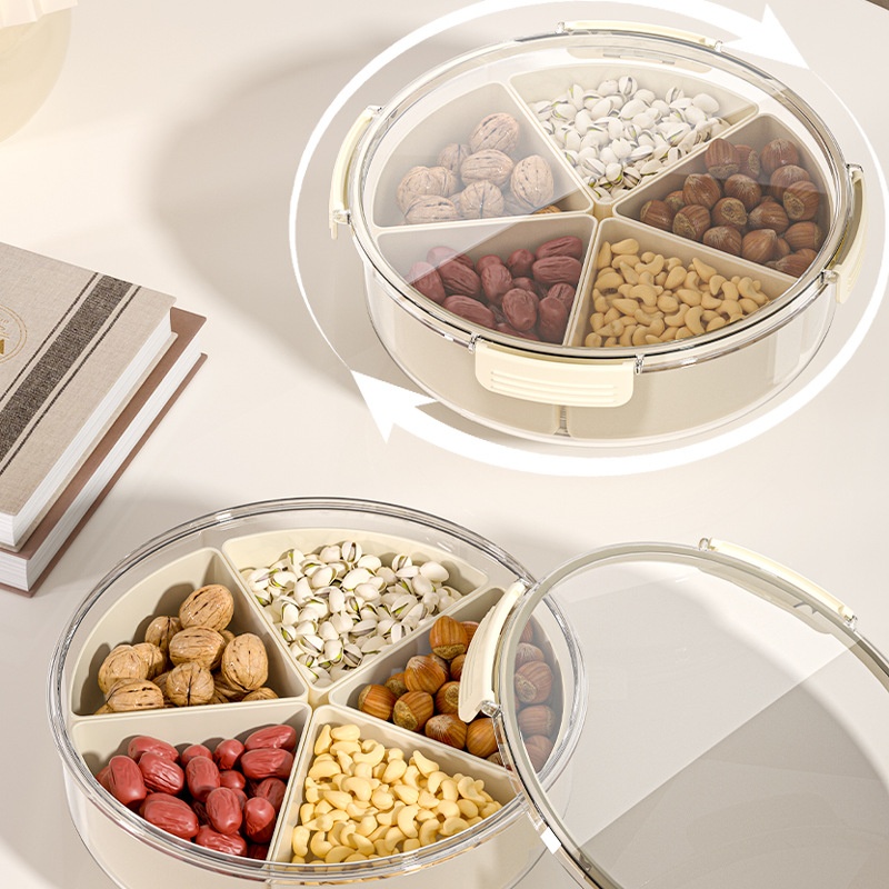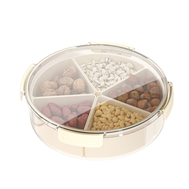 Multifunctional Sealed Rotatable Compartmented Dried Fruit Storage Tray Rotating Fruit Box Snap-on Simple Fruit Shell Storage Box