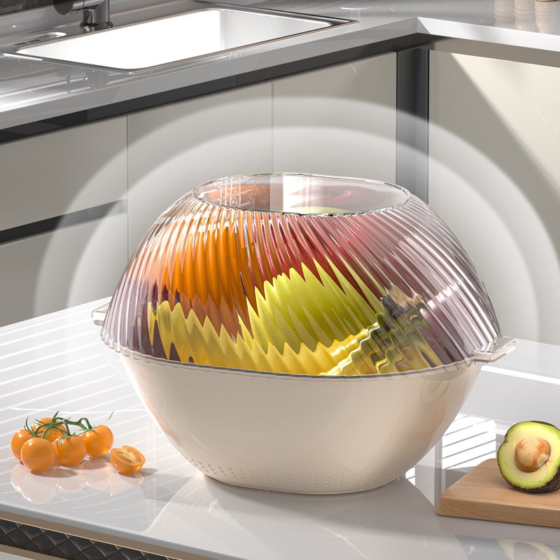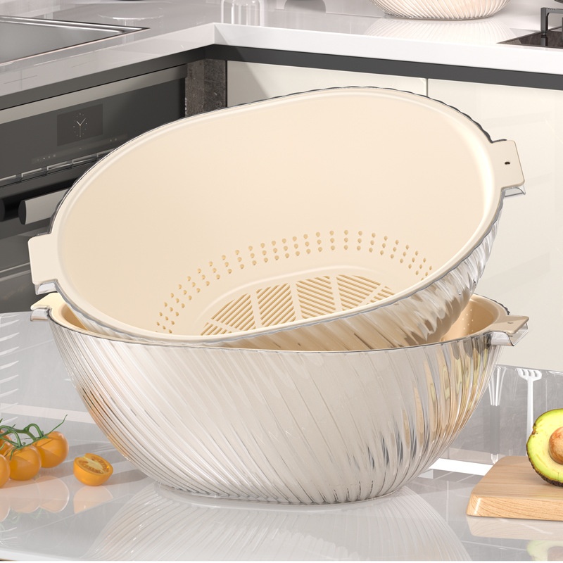 Double-layer Drain Basket Vegetable Washing Basin Fruit Plate Kitchen Living Room Household Round Vegetable Basket Plastic Gift List