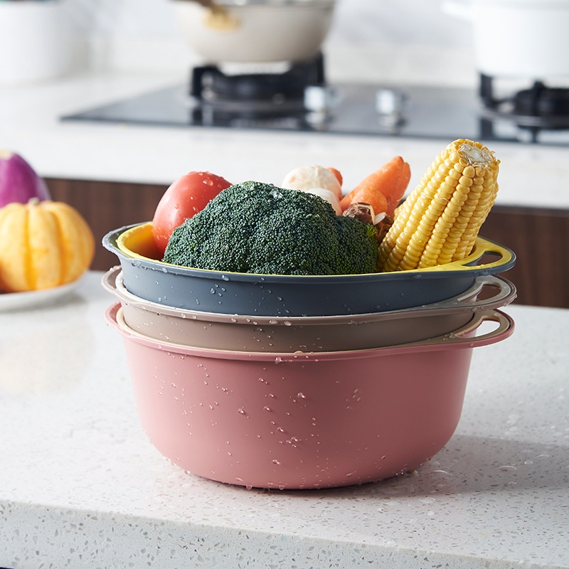 Double-layer Multifunctional Drain Basket Kitchen Vegetable Basket Drain Basin Simple Storage Fruit Plate Plastic Storage Basket