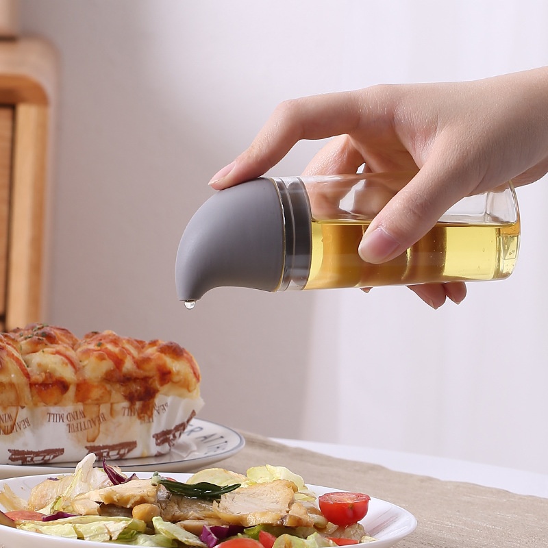 Soy Sauce Vinegar Seasoning Bottle Kitchen Supplies Household German Glass Silicone With Lid Leak-proof Fitness Sesame Oil Small Bottle