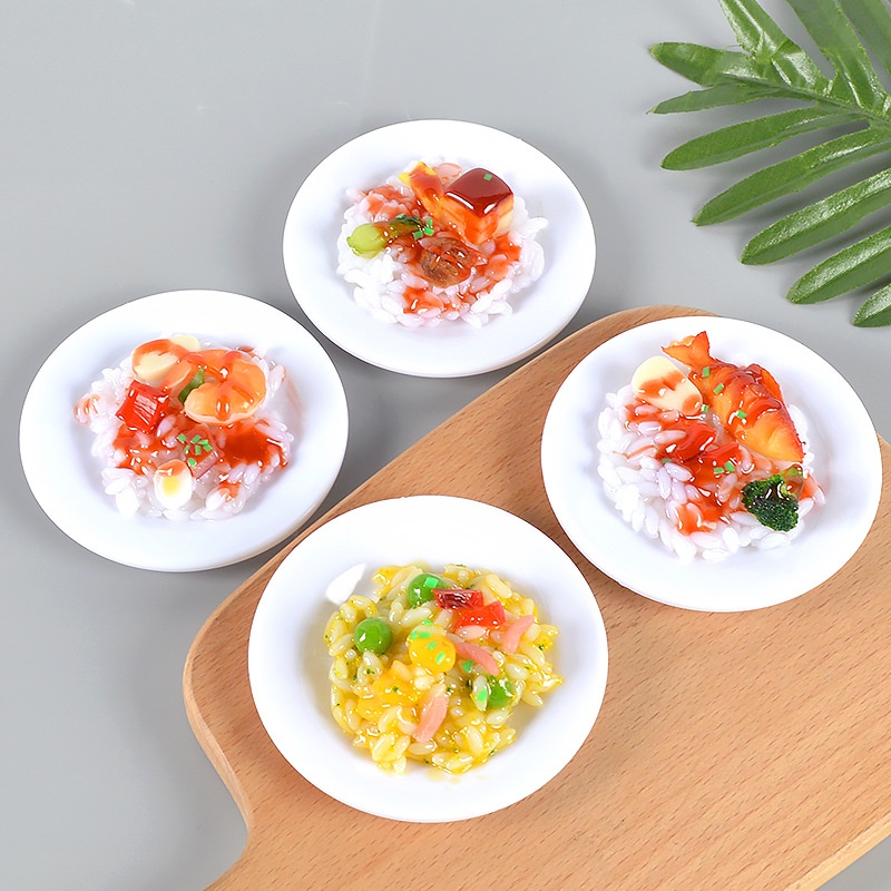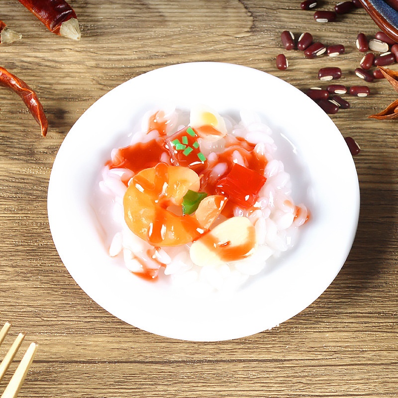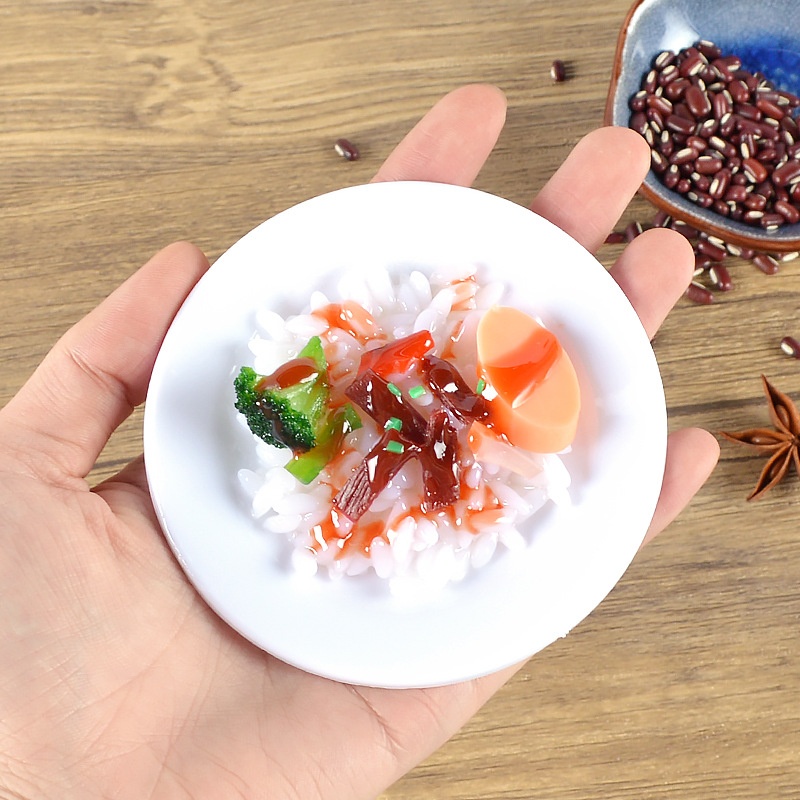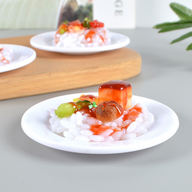9cm Simulation Food Model Braised Pork And Braised Fish Rice Props Play House Kitchen Toys