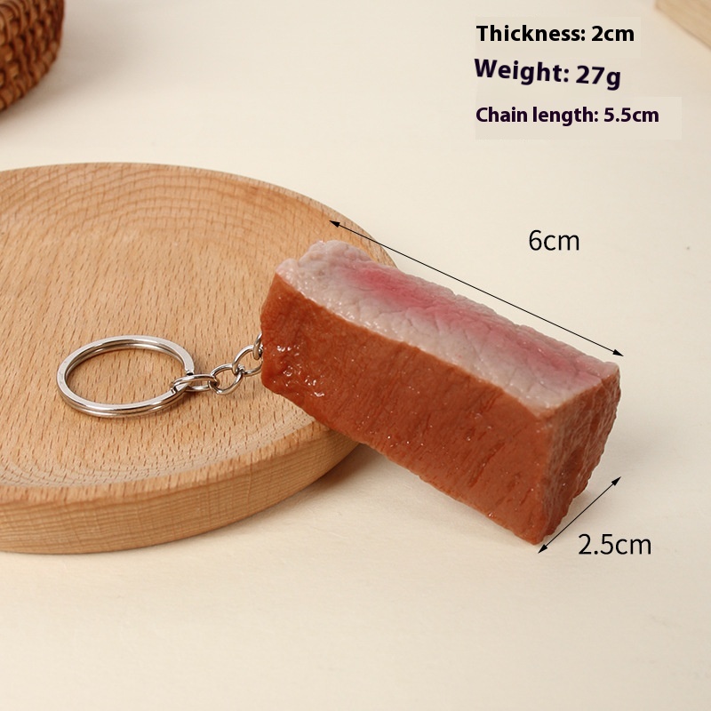 Simulation Beef Block Keychain Pendant Creative Trick Toy Simulation Food Play Five Minutes Fried Beef Pendant