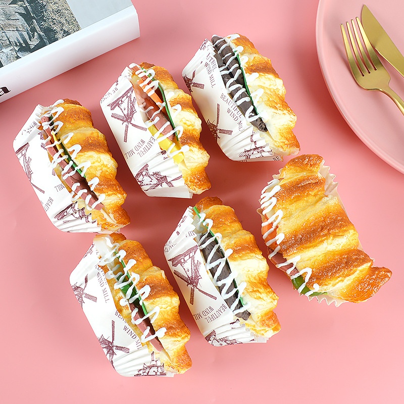 Douyin The Pu Simulation Croissant Props Simulation Ham Vegetable Salad Breakfast Bag Refrigerator Magnet