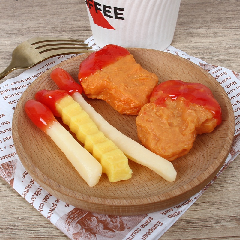 Simulation Ketchup French Fries Pendant PVCSimulation Food Chicken Nuggets Salad Sauce French Fries Food Play Bead Chain Pendant