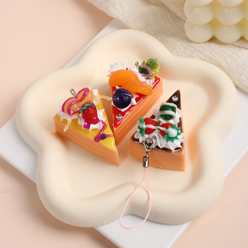 Simulation Triangle Cake Pendant Creative Mobile Phone Bag Pendant Simulation Food Play Fruit Cream Mousse Cake