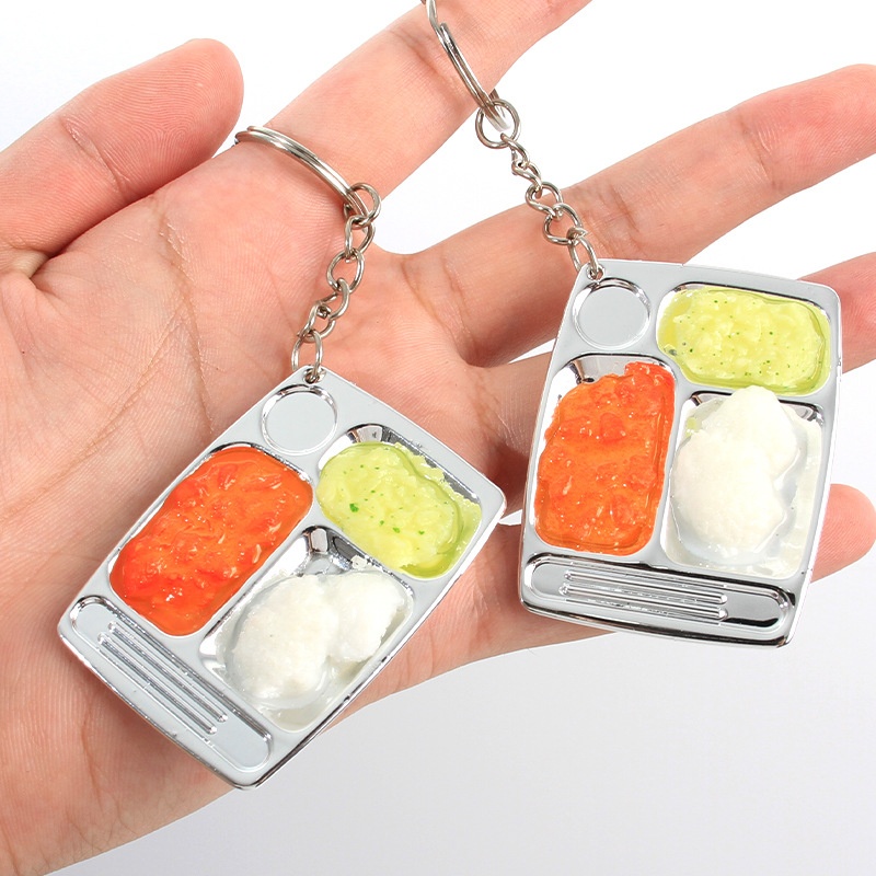 Miniature Food Play Fast Food Tray Props Creative Mini Food Play Pendant Simulation Tomato Scrambled Eggs Keychain Pendant