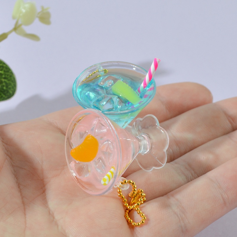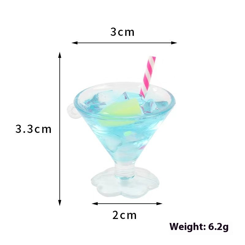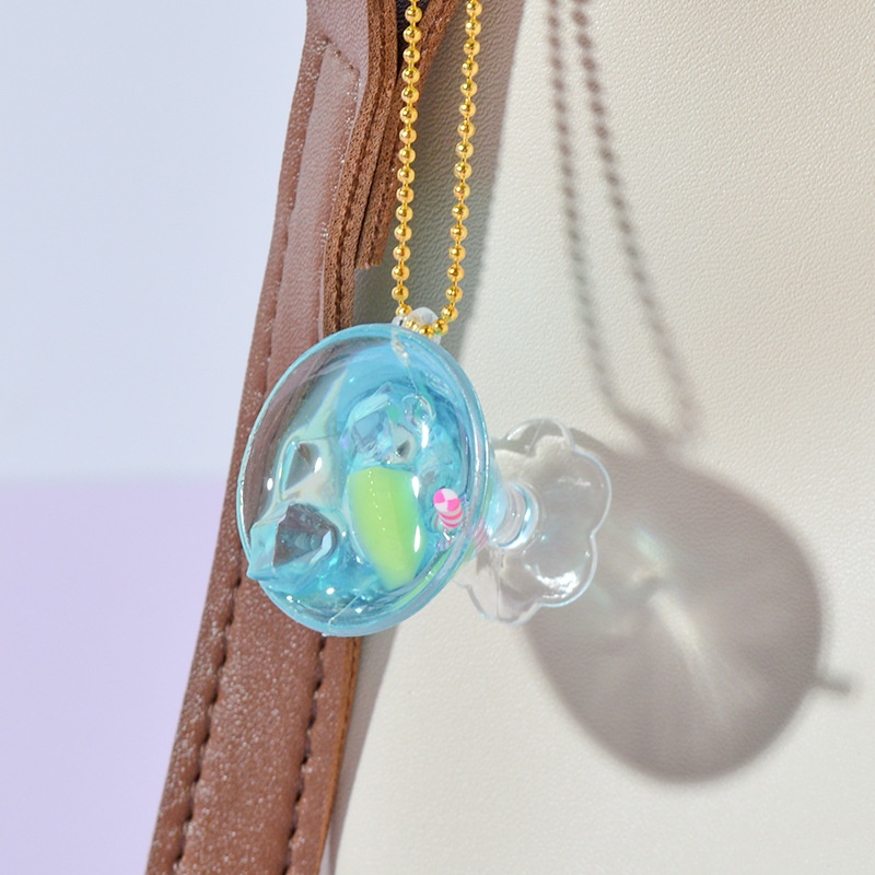 Simulation Mini Blue Enchantress Cocktail Keychain Pendant Simulation Iced Fruit Cup Beverage Food Play Ornaments
