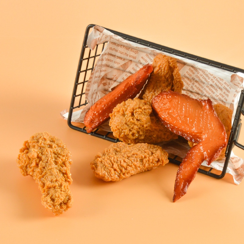 Simulation Fried Chicken Legs,Chicken Nuggets,French Fries,Family Bucket Set Meal,Fun Simulation Food,Fried Chicken Wings Keychain Pendant