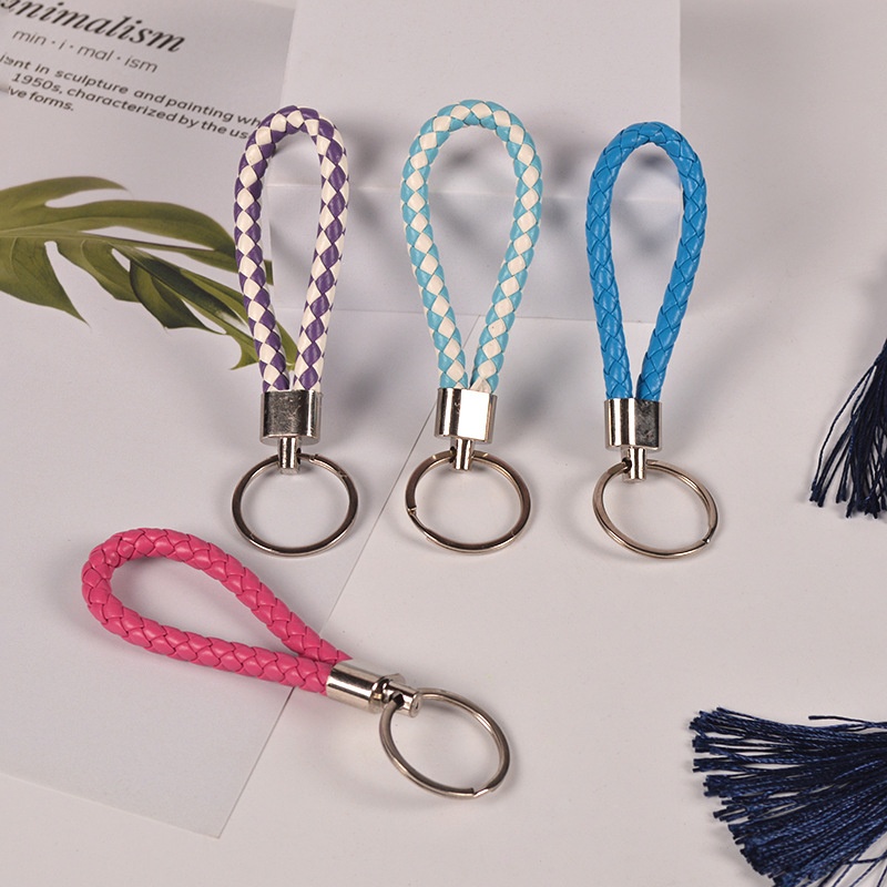 Multi-color Leather Braided Keychain Men's And Women's Car Keychain Pendant With Metal Key Ring
