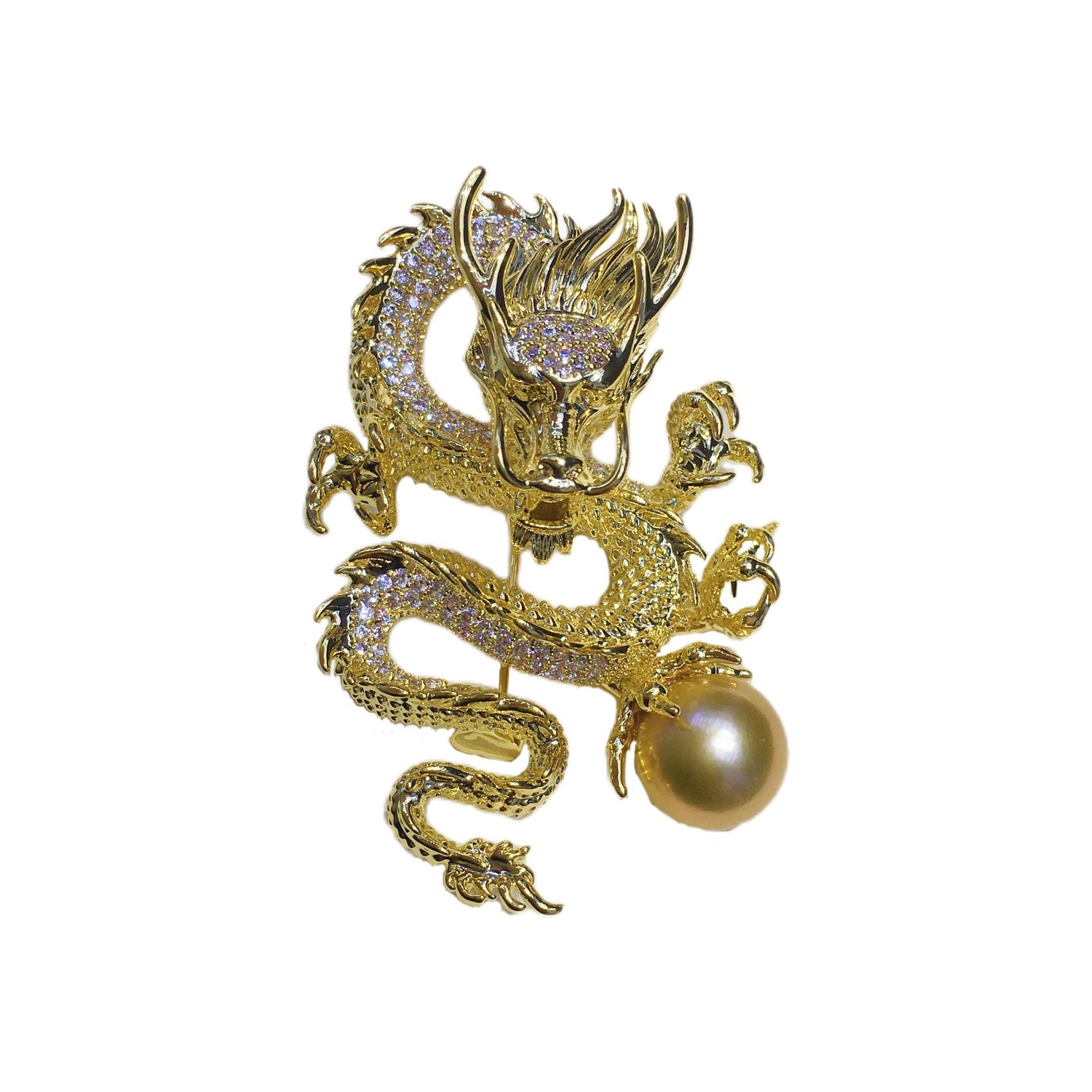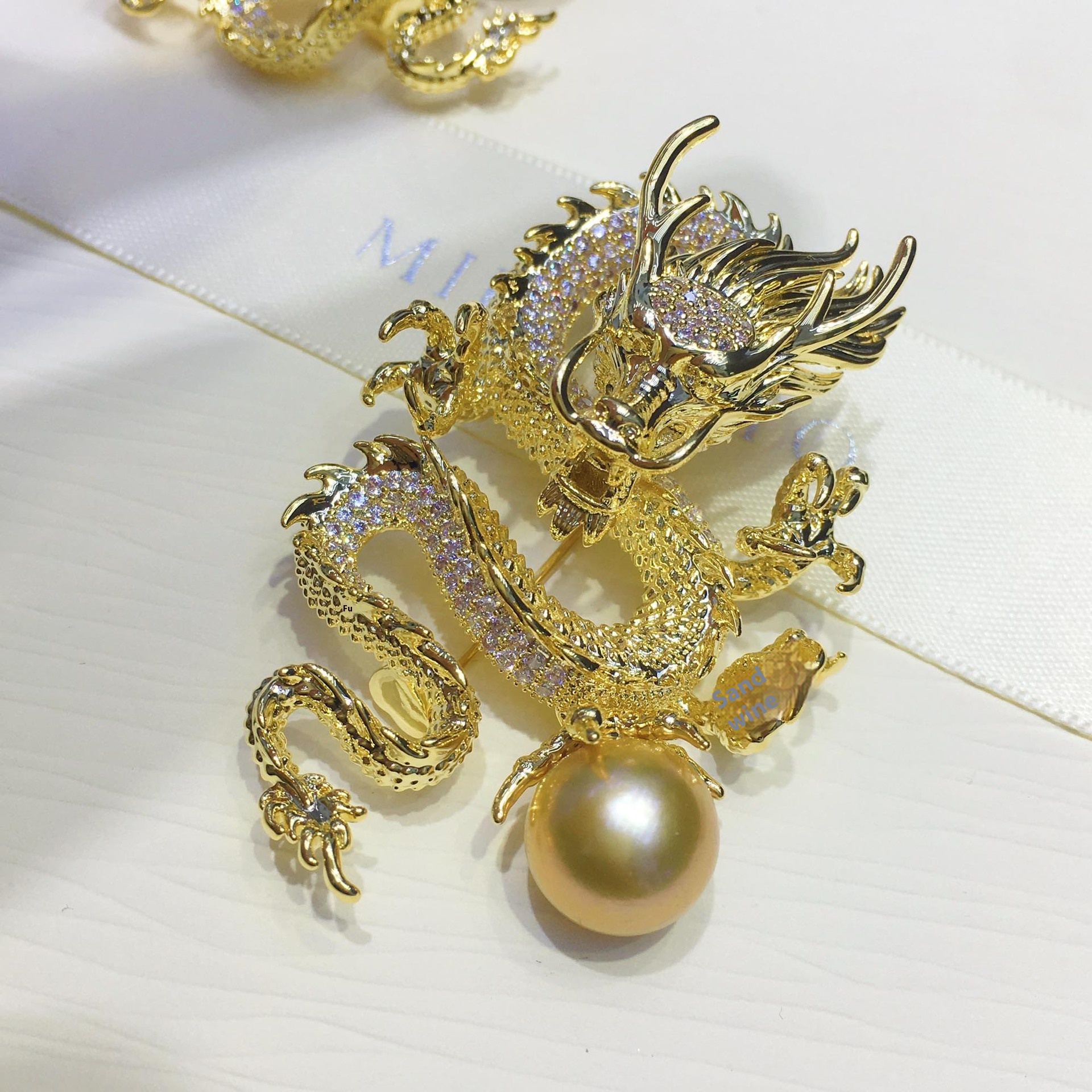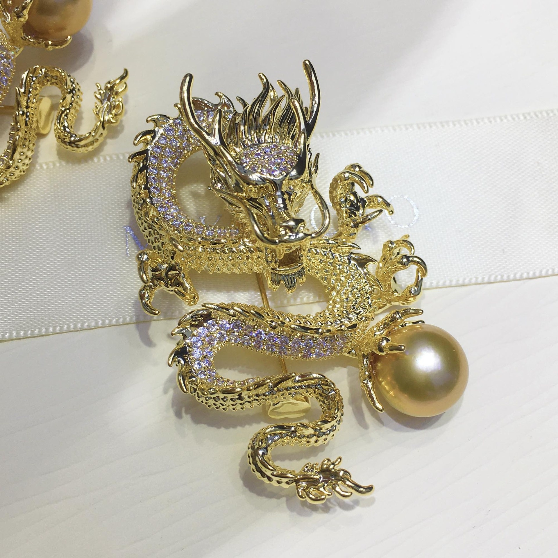 Chinese Style Year Of The Dragon Freshwater Gold Pearl Zodiac Year Neutral Style Zodiac Dragon Brooch Suit Temperament Corsage Decoration