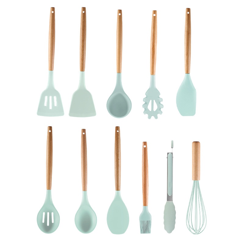 Wooden Handle Silicone Kitchenware12-piece Set Colorful Kitchen Non-stick Pan Can Be Used For High Temperature Cooking Shovel Spoon Kitchenware Set