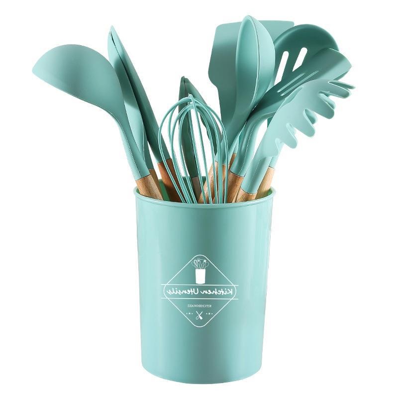 Creative12-piece Set Of Wooden Handle Silicone Kitchenware Functional Set Combination Non-stick Pan Kitchen Cooking Shovel Spoon