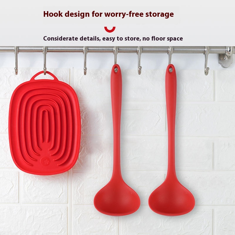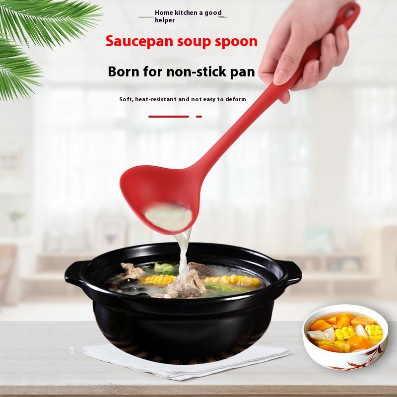 Kitchen Long Handle Non-stick Cooking Spoon Hot Pot Spoon Household Integrated All-inclusive Silicone Soup Spoon Kitchenware