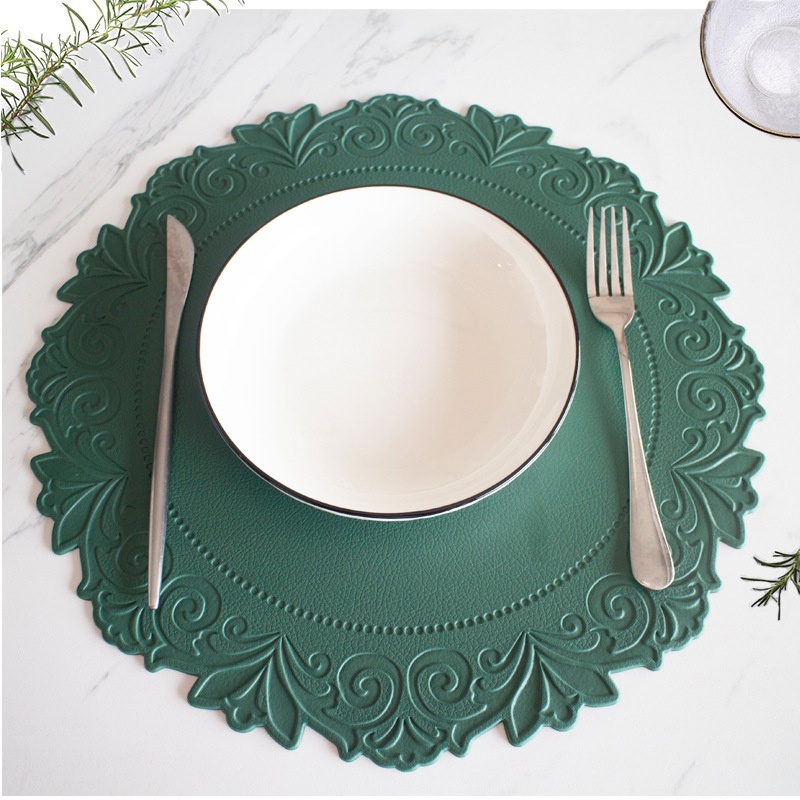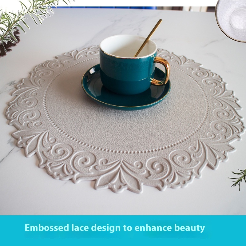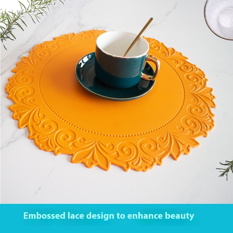 Lace Round Imitation Leather Placemats Non-slip Waterproof Anti-scalding Table Mats Large Plates Pots And Bowlsulation Mats Coasters