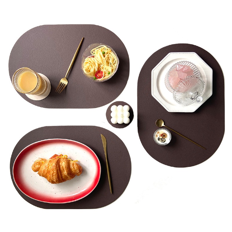 Oval Two-color Leather Placemat PUWestern-style Placemat Anti-scaldingulation Pad Anti-slip And Oil-proof Table Mat Coaster