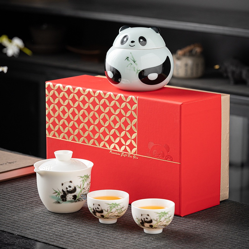 Cultural And Creative National Style Ceramic Panda Jar Tea Jar Ornaments Home Gifts Candy Sealed Jar Gift Box Foreigner Souvenir