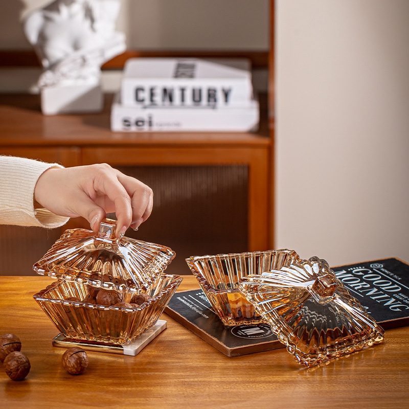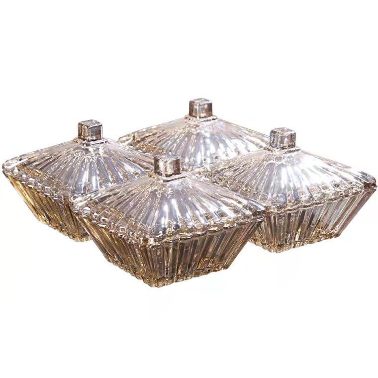 European Wedding Glass Candy Cup Gift Box Jewelry Storage Box Sealed Jar With Square Lid Dried Fruit Jar