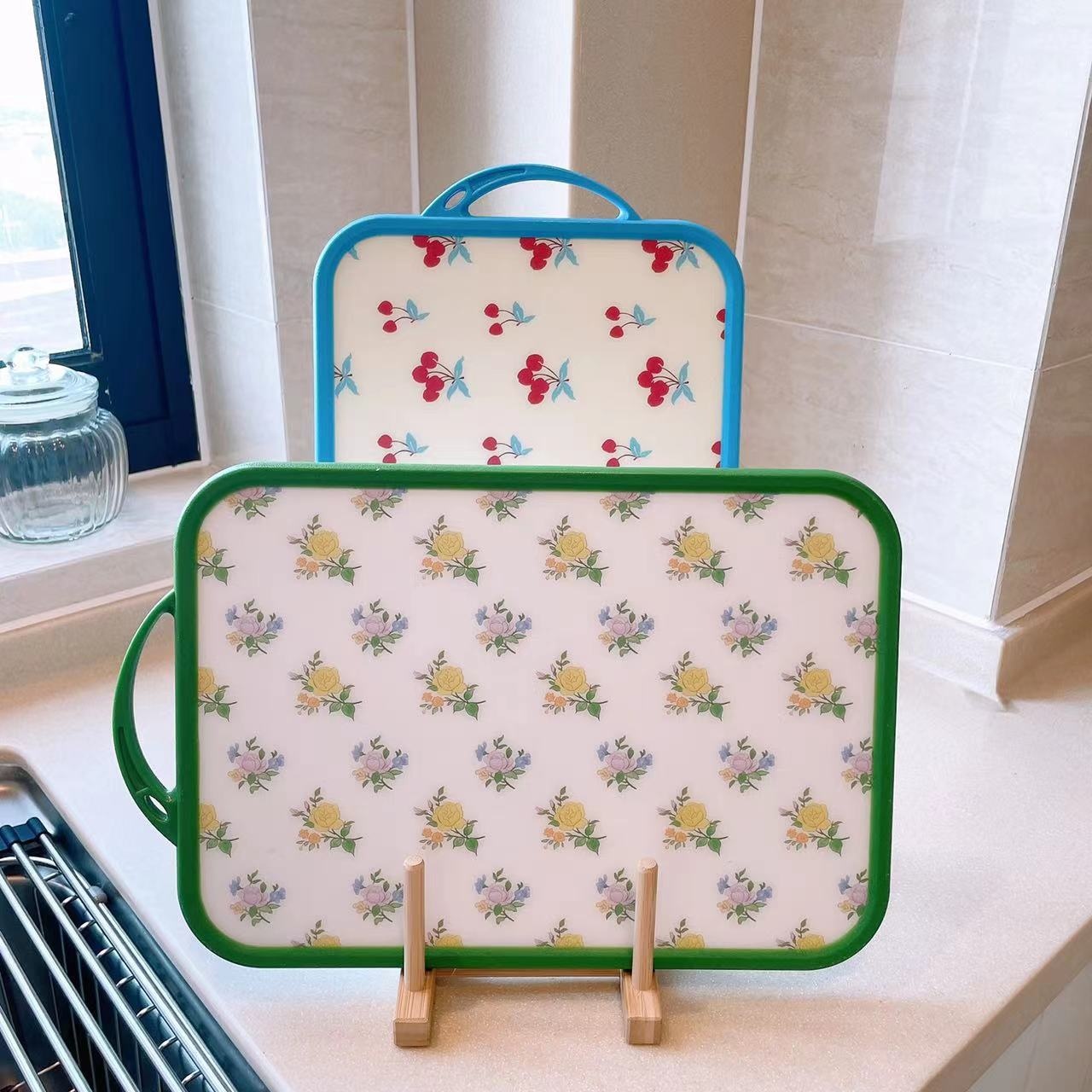 Small Floral Cherry Fruit PPCutting Board Double-sided Picnic Camping Kitchenware Antibacterial Kitchen Plastic Cutting Board