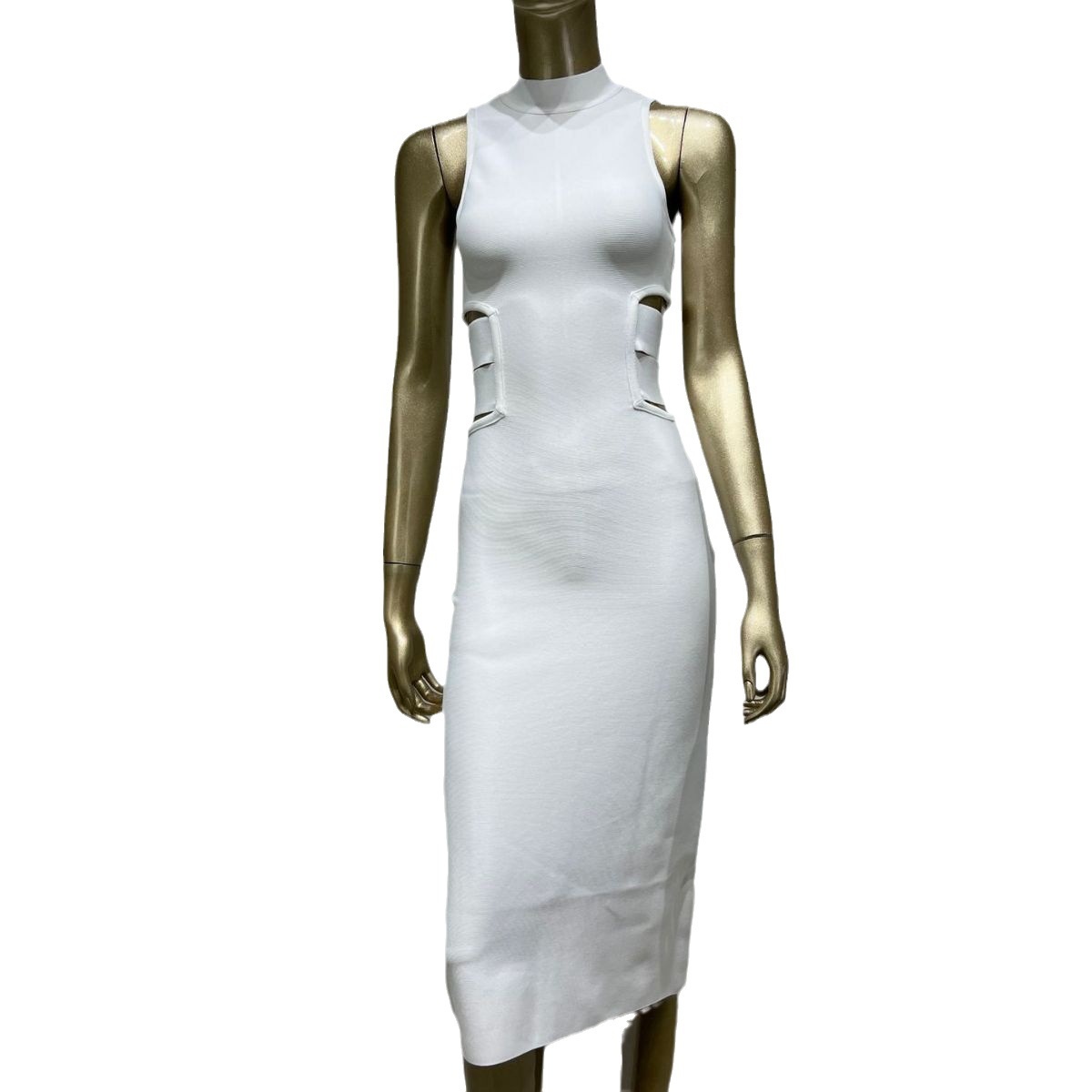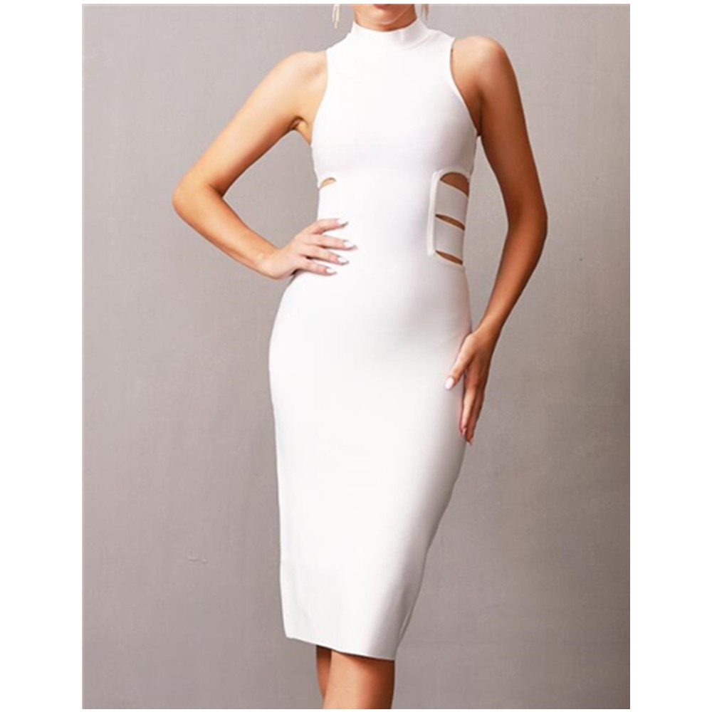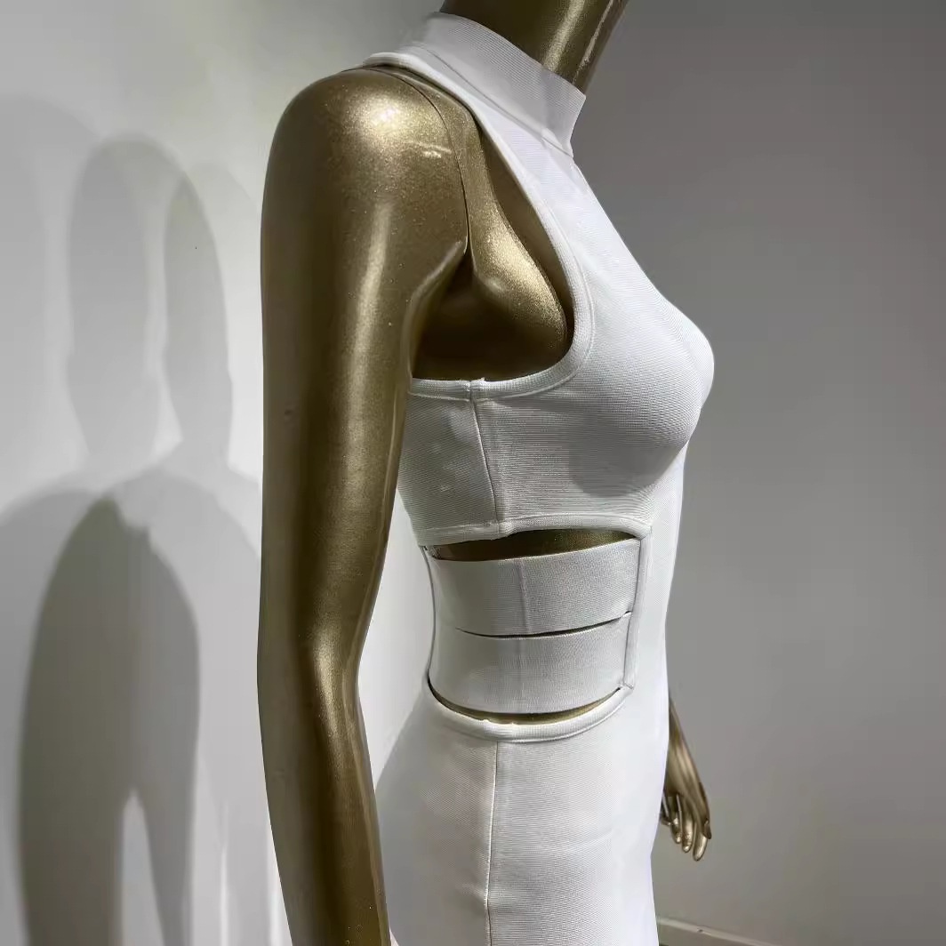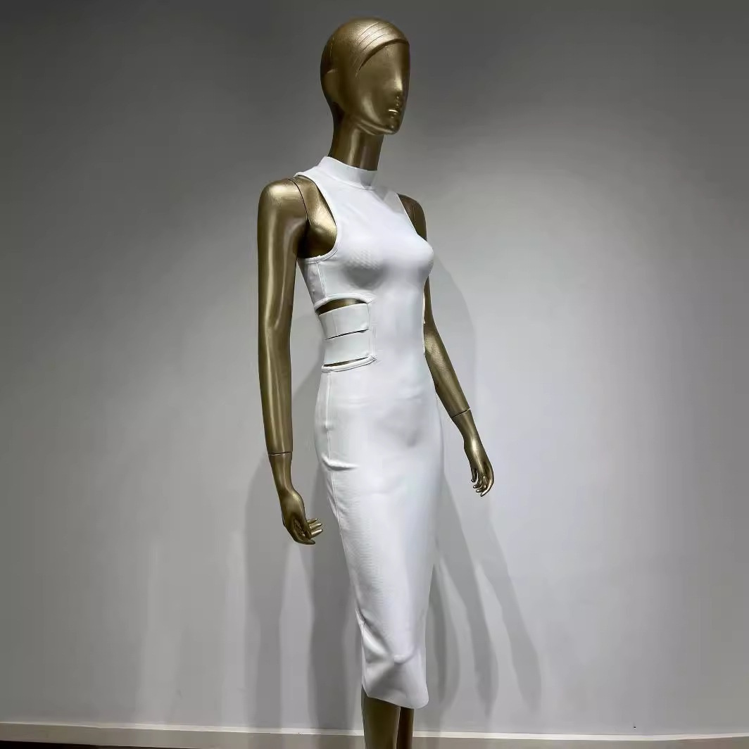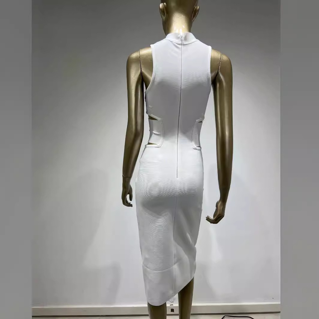 White Bandage Dress European And American Fashion Elegant High Street Sleeveless Knee-length Skirt