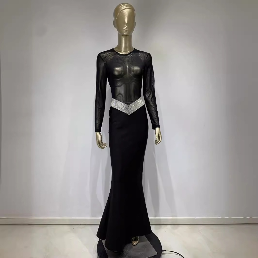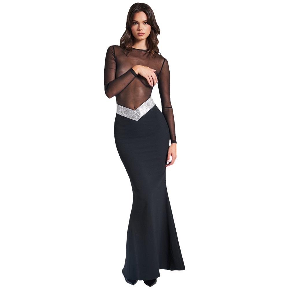 European And American Fashion Sexy Black Gauze Bandage Stitching Perspective Party Dress Dress