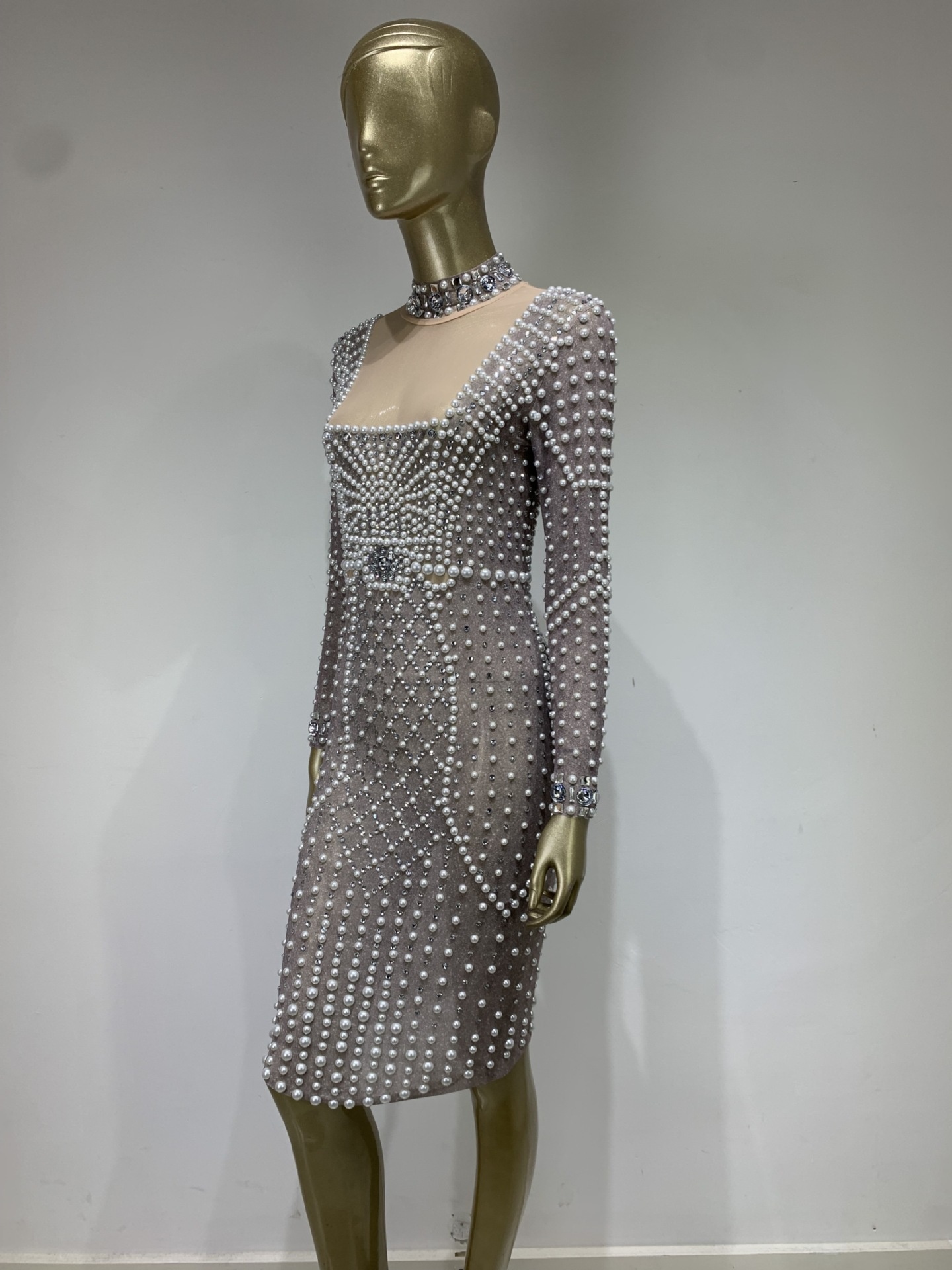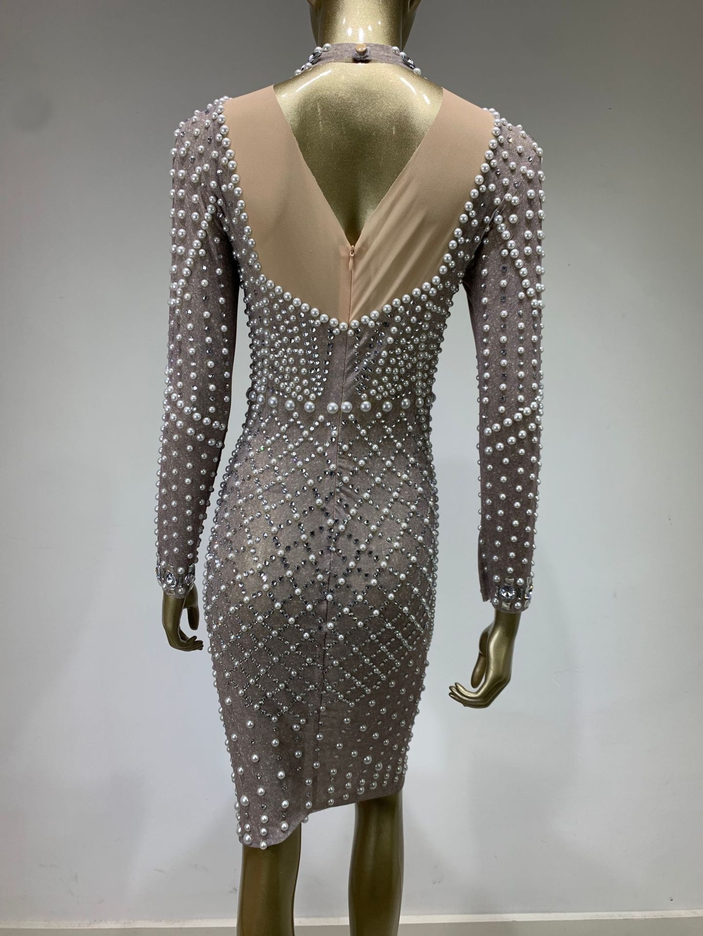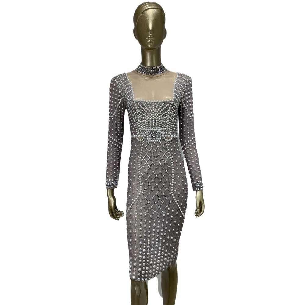 Mesh Beaded Elastic Tight Dress European And American Fashion Banquet Party Dress Skirt