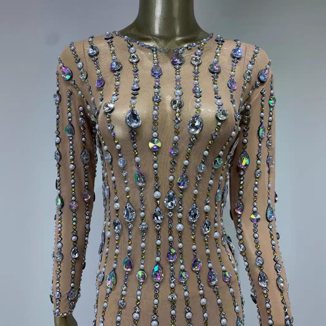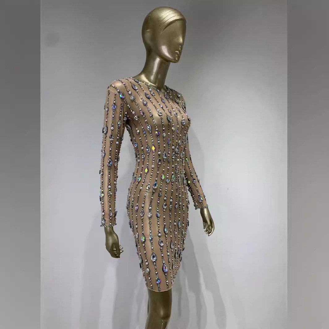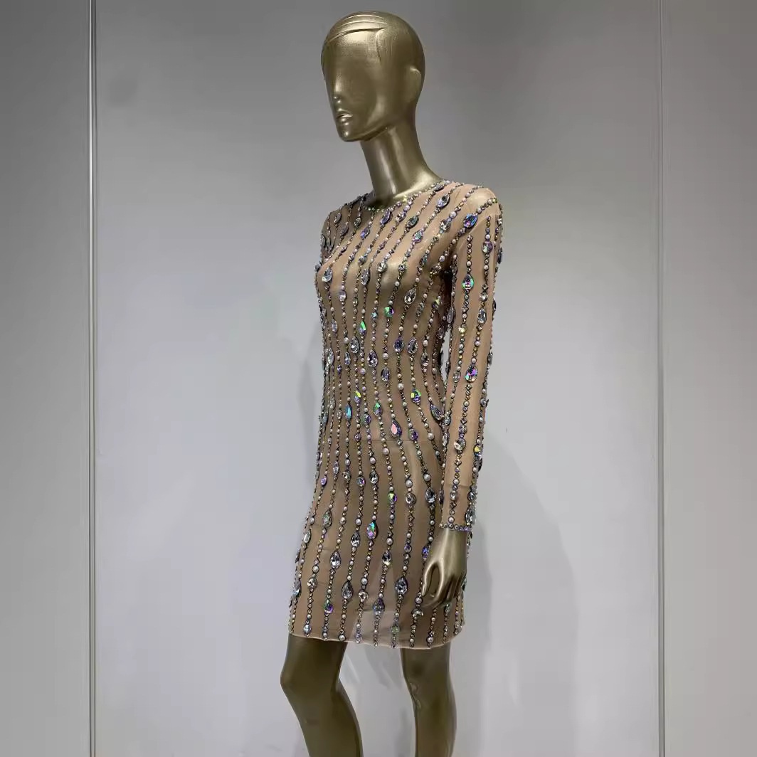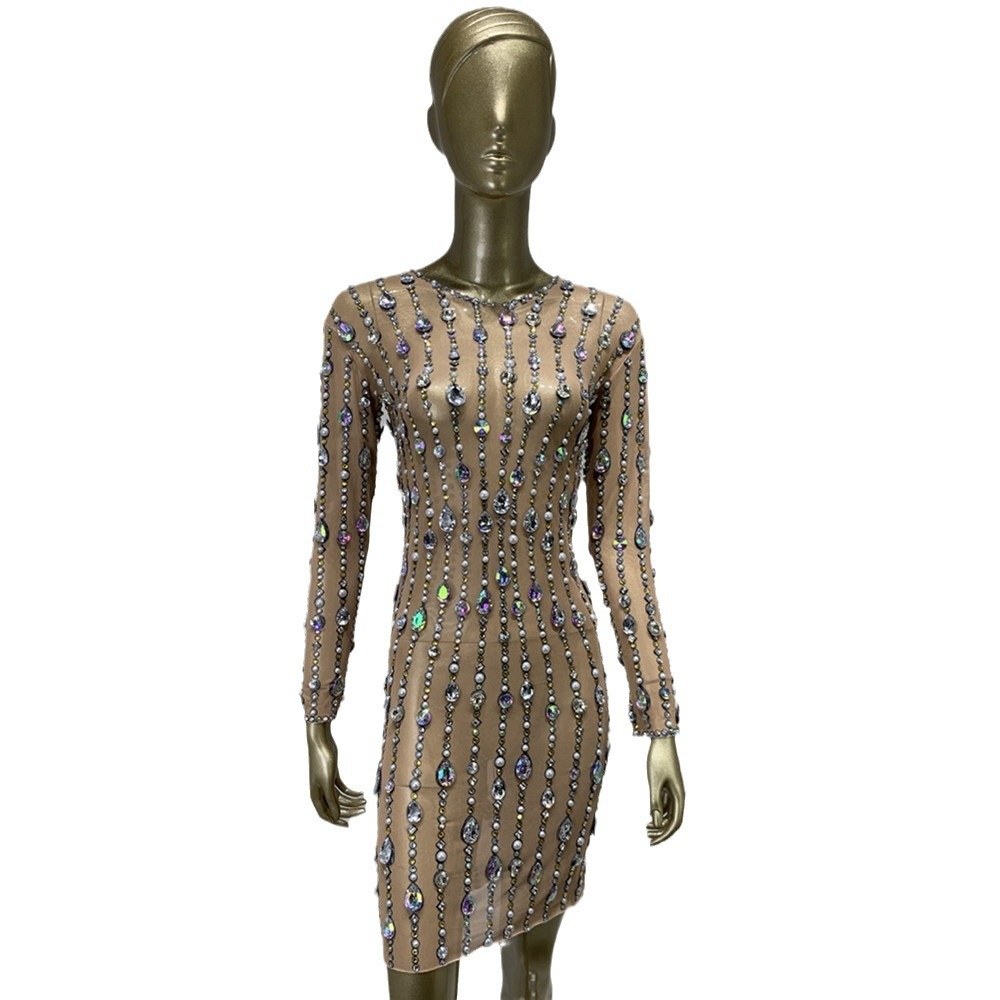 Foreign Trade Hot-selling Mesh Rhinestone Shiny Tight Hip Skirt European And American Banquet Party Dress Skirt