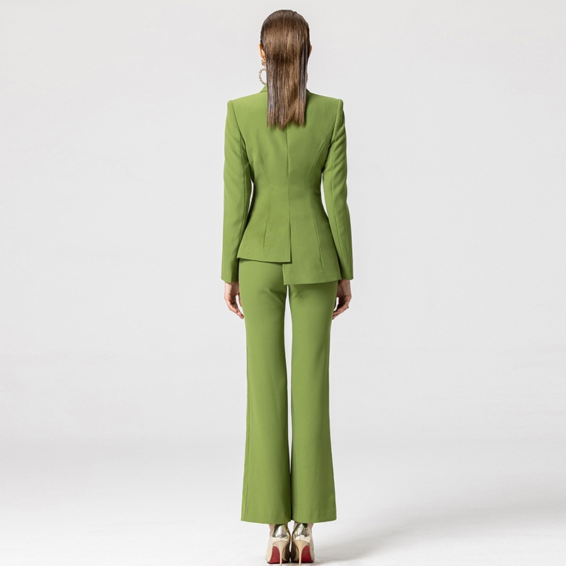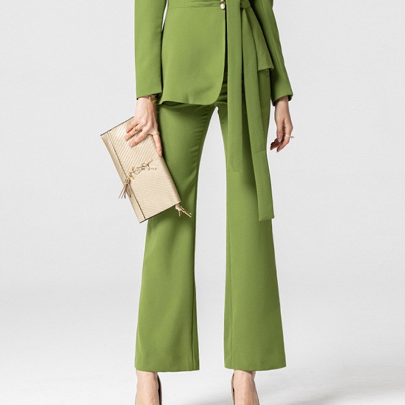 Spring,Summer And Autumn Green Fashion Waist Professional Suit OLBusiness Long-sleeved Suit Collar Two-piece Suit