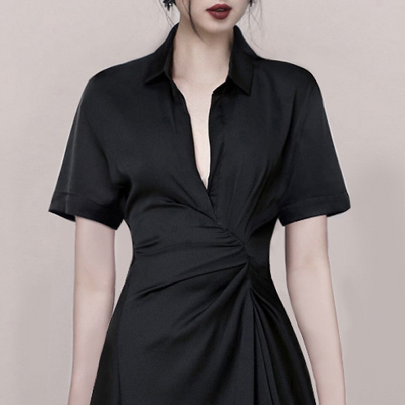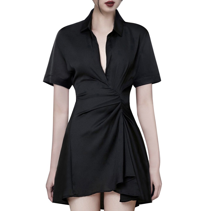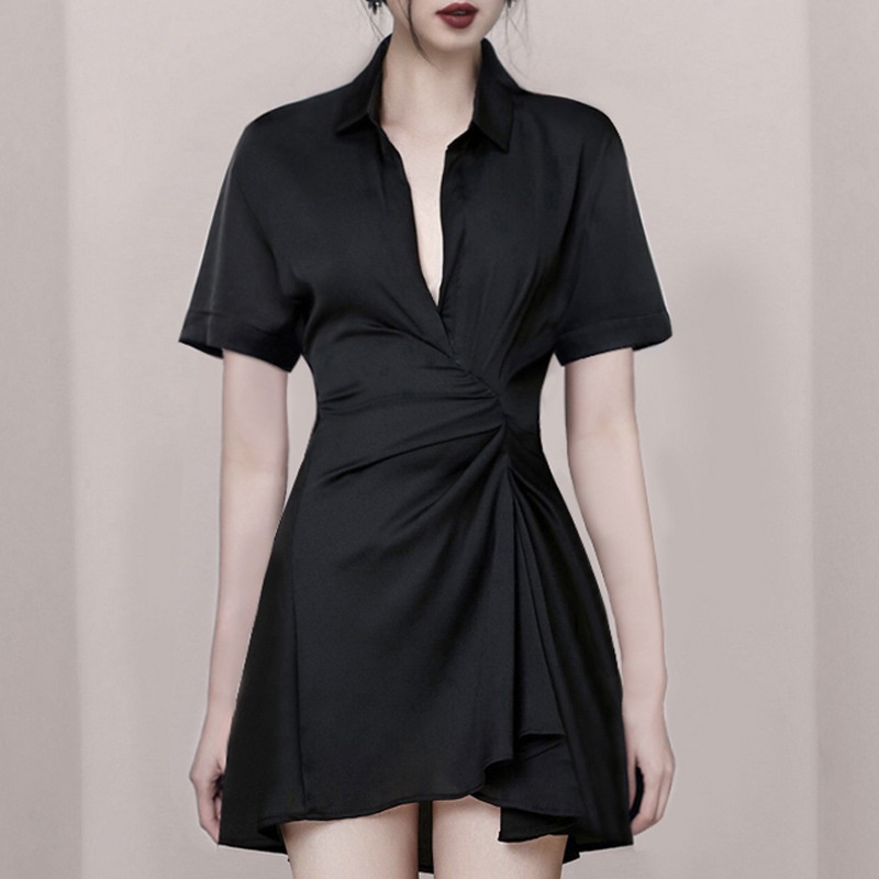 Thai Fashion Brand Sexy V-neck Irregular Black Dress Female Fashion Chic Temperament Celebrity Banquet Small Dress