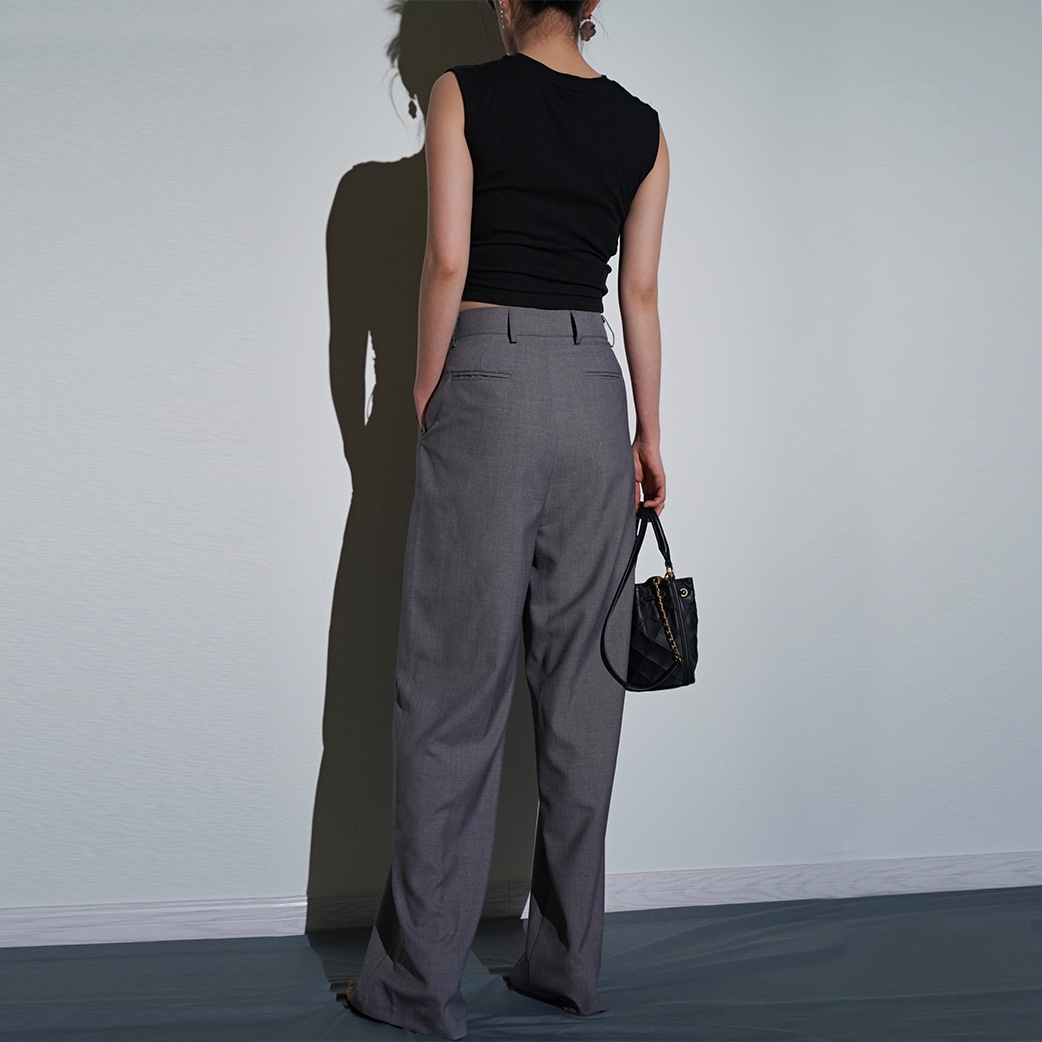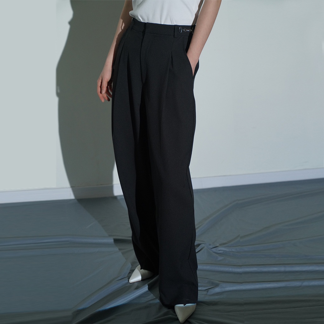 The Owner Recommends!Homemade CEStyle Thin Non-pleated High Waist Trousers Horseshoe Buckle Thin Trousers