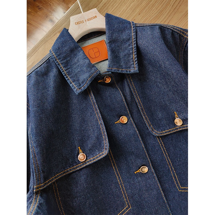 Heavy Industry Simple Feng Shui Washed Blue High-grade Slim Fit Long-sleeved Lapel Fashionable Short Denim Jacket Female Spring Female