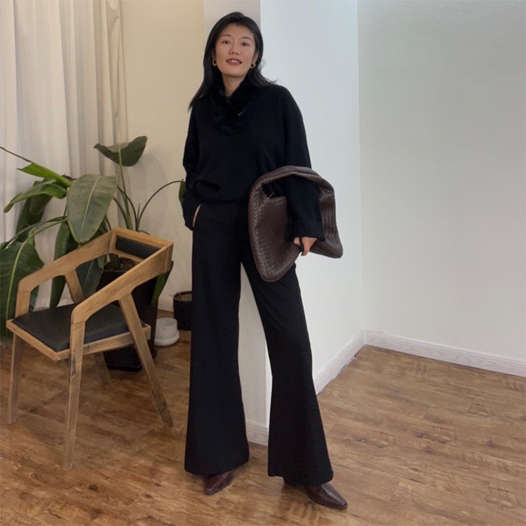 Heavy Tailoring!High Waisted,Slimming,Flared Casual Pants,Black Suit Pants,Minimalist Structured Line Stitching Trousers