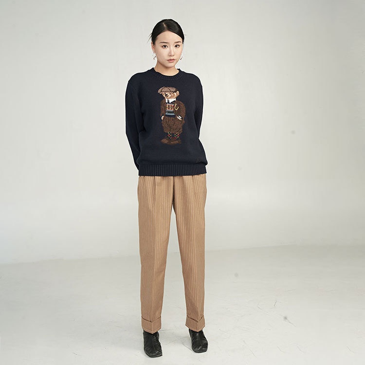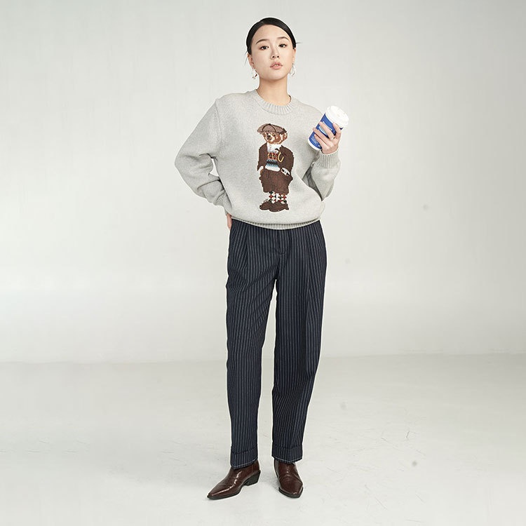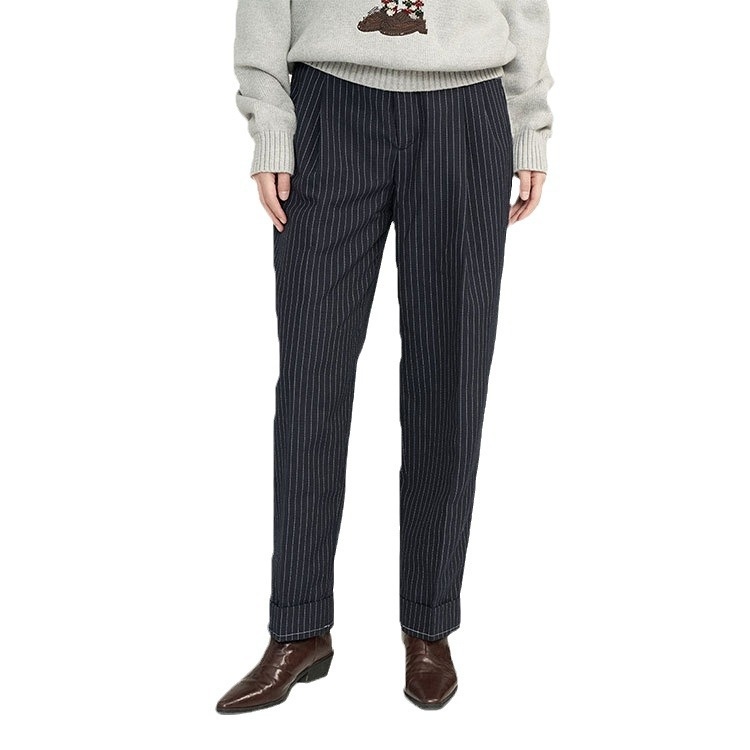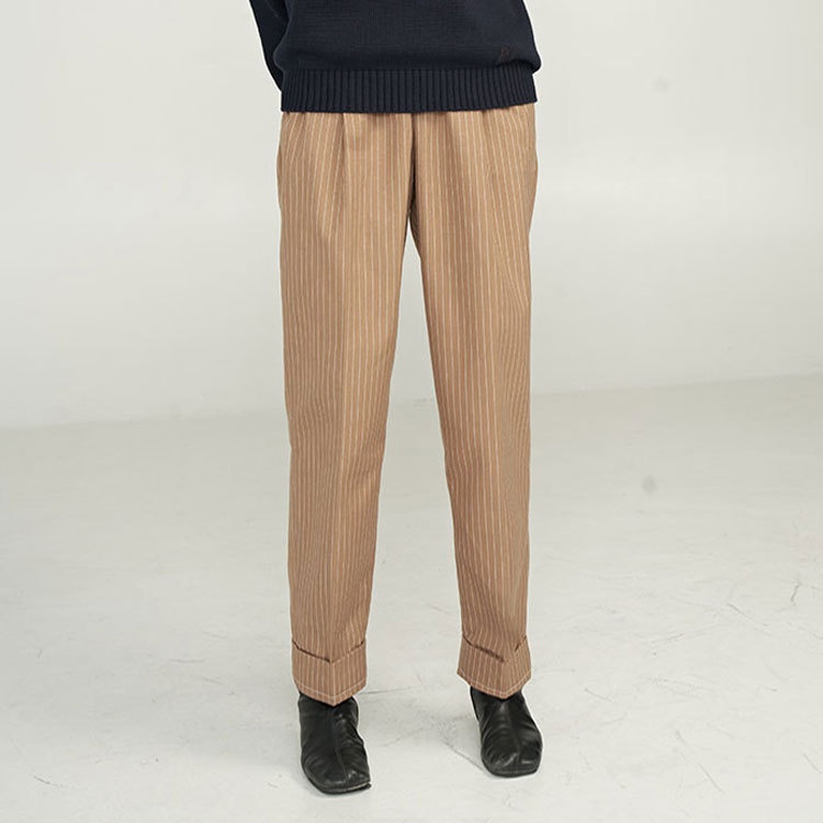 Kou~Retro High Waist Wool Trousers With Heavy Details,Highly Recommended By The Owner!Casual Striped Suit Trousers