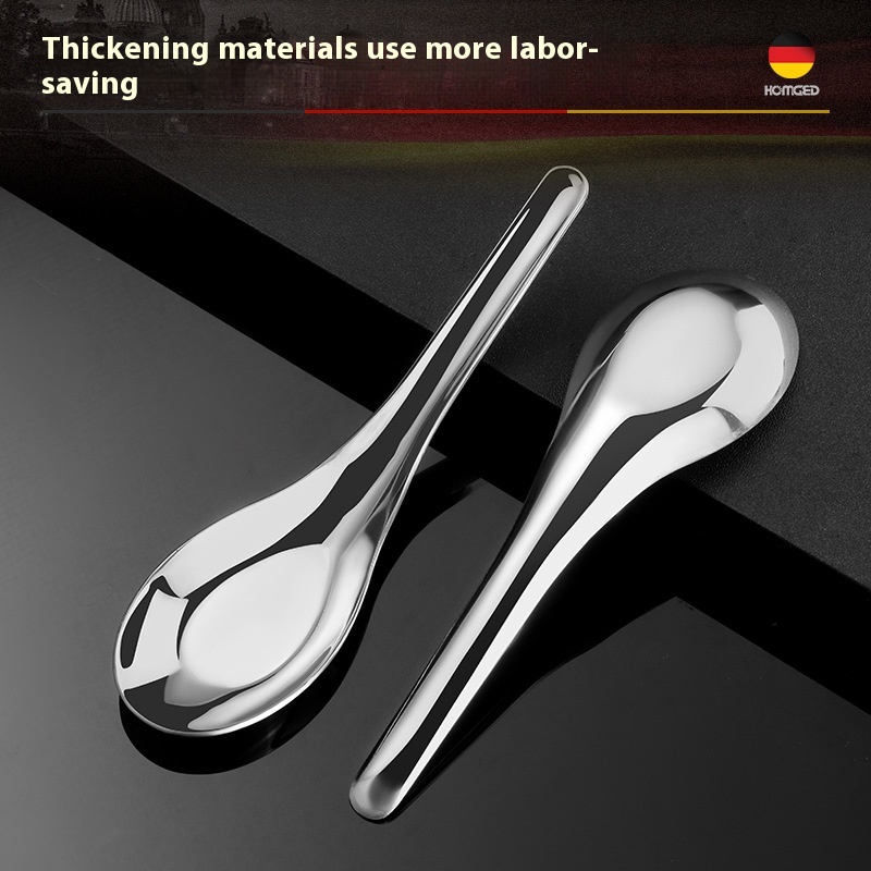 304 Stainless Steel Spoon Household Creative Flat Bottom Spoon Thickened Spoon Chinese Spoon Eating Soup Spoon