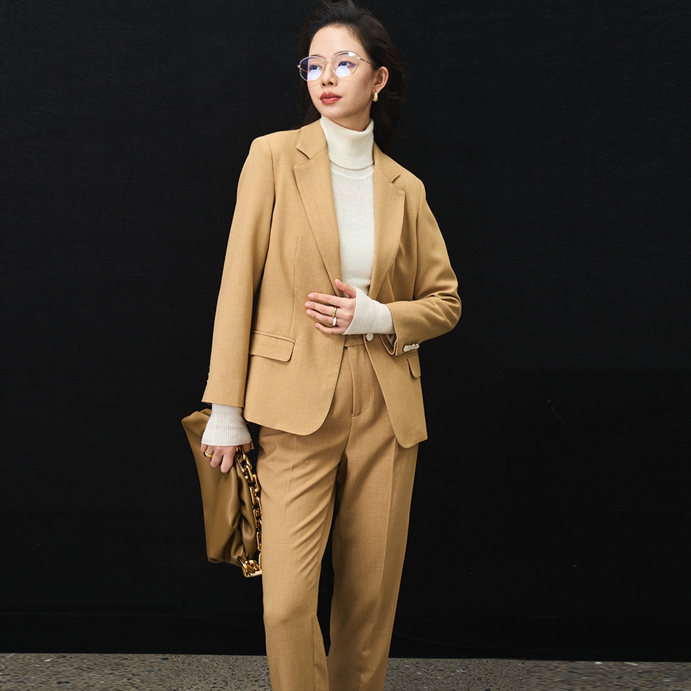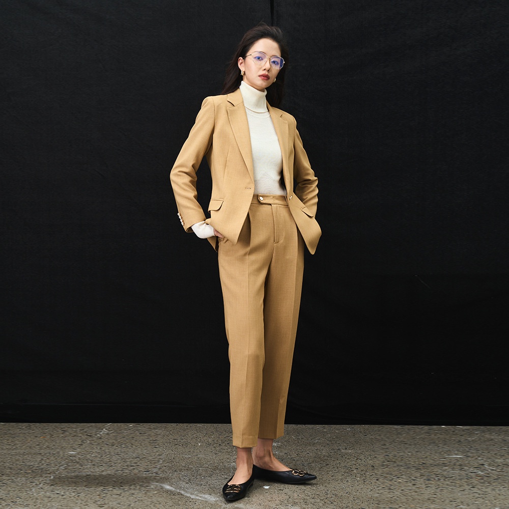 [Shengdu]SNDUAutumn Waist Bright Color Professional Commuting Waist Suit Slim Pants Suit Tops For Women