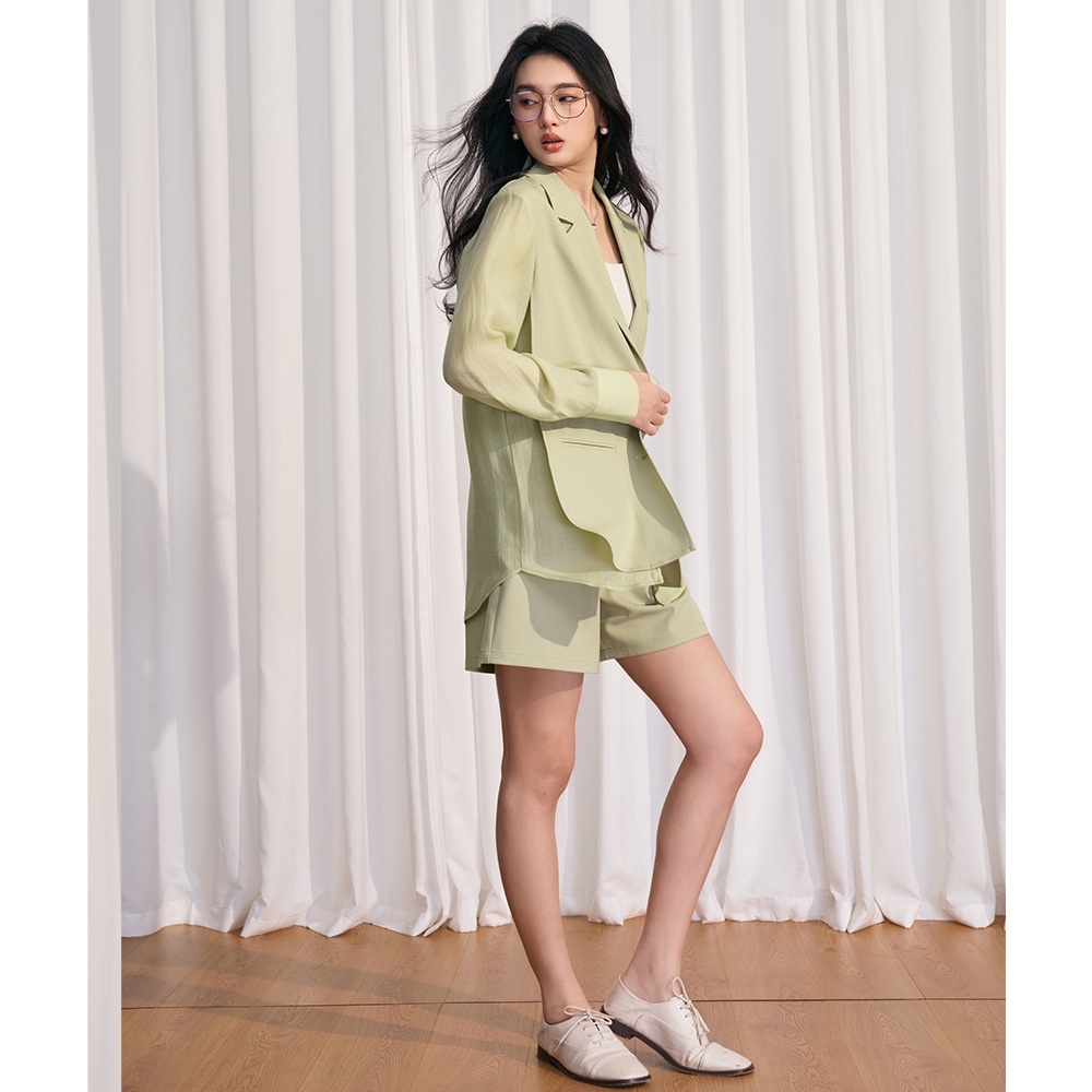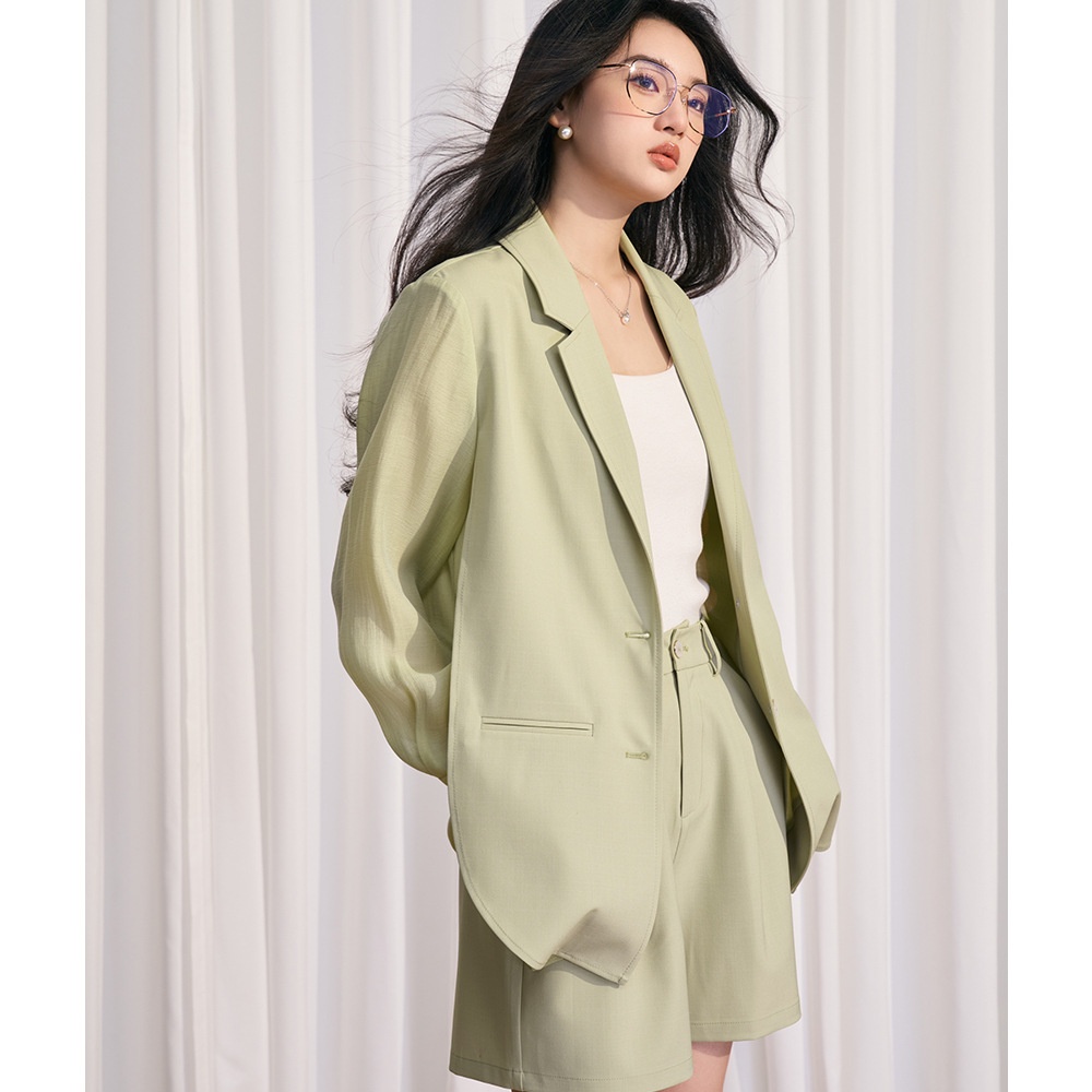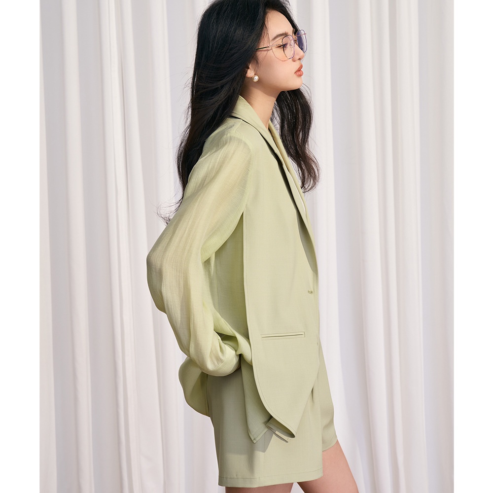 [Shengdu]24 Spring Korean Simple Casual Style Green Fresh Splicing Suit Top Jacket Suit Women