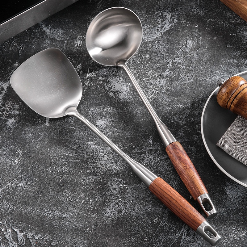 Rosewood Kitchenware Set304 Stainless Steel Spatula Soup Spoon Set Frying Spatula Kitchenware Hot Pot Colander Spoon Rice Spoon