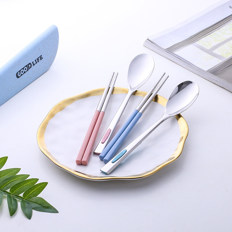 Sickle Portable Cutlery Set304 Stainless Steel Cutlery Full Set Of Wheat Straw Student Chopsticks Spoon Combination