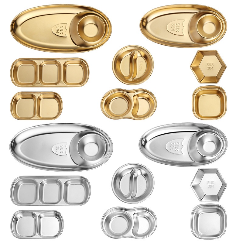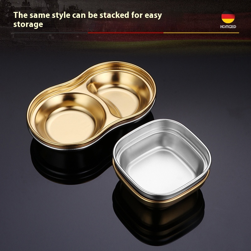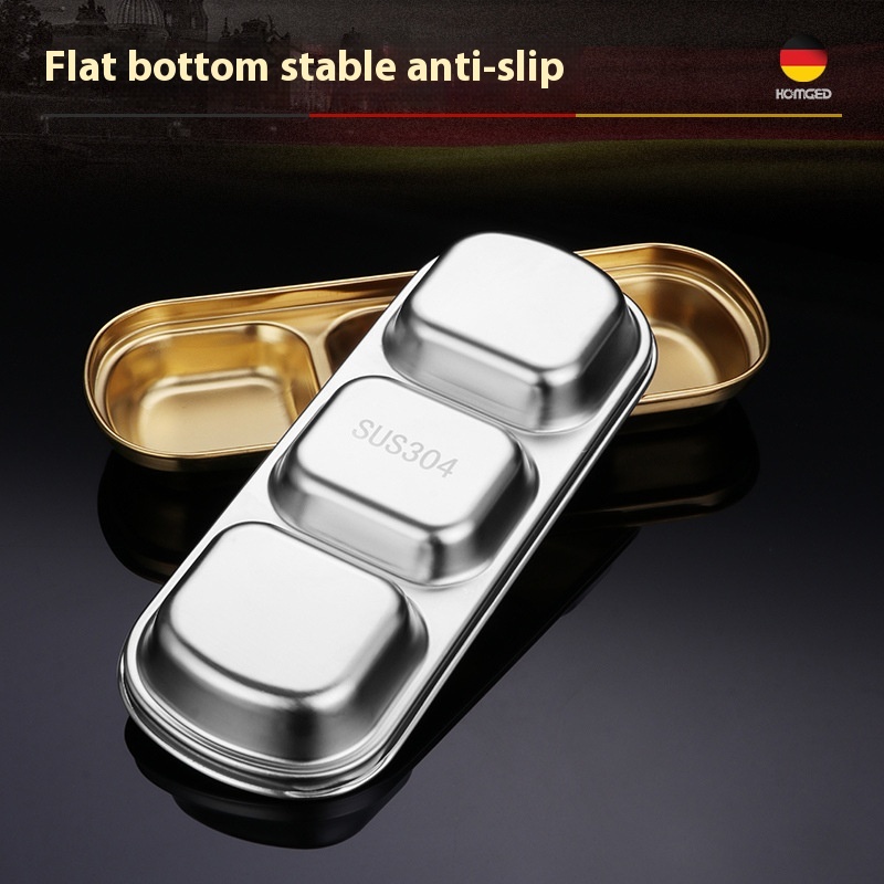304 Stainless Steel Barbecue Seasoning Dish Japanese And Korean Hot Pot Barbecue Dish Dipping Dish Korean Small Plate Two Grid Three Grid