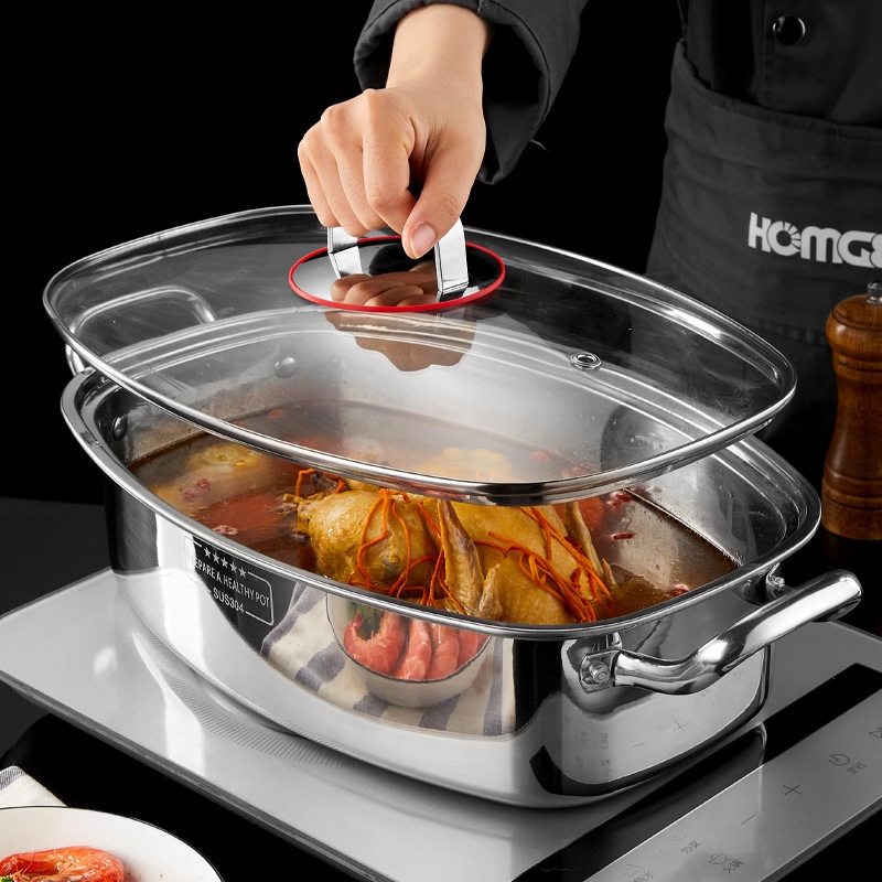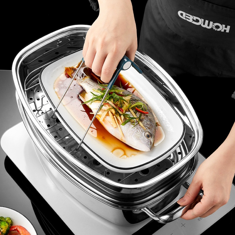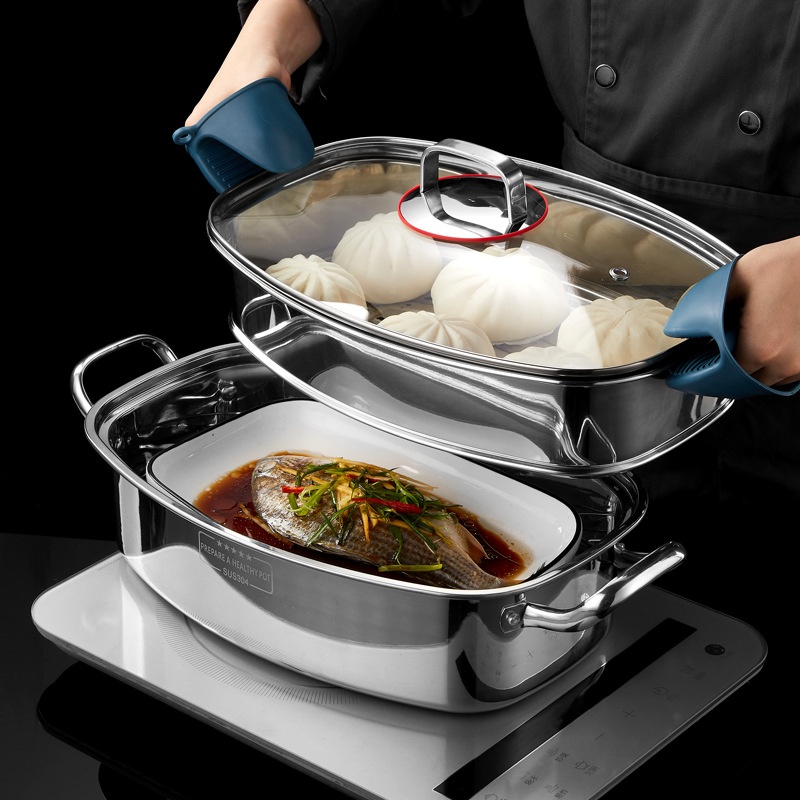 304 Stainless Steel Steamed Fish Pot Steamed Duck Pot Oval Steamed Chicken Steamed Fish Artifact Large Double Bottom Household Thick Steamer