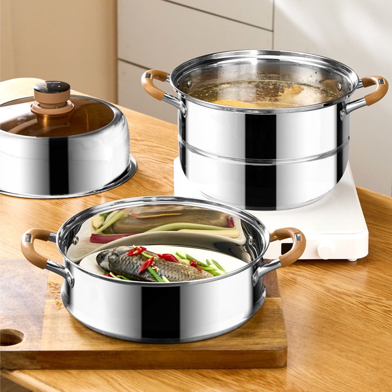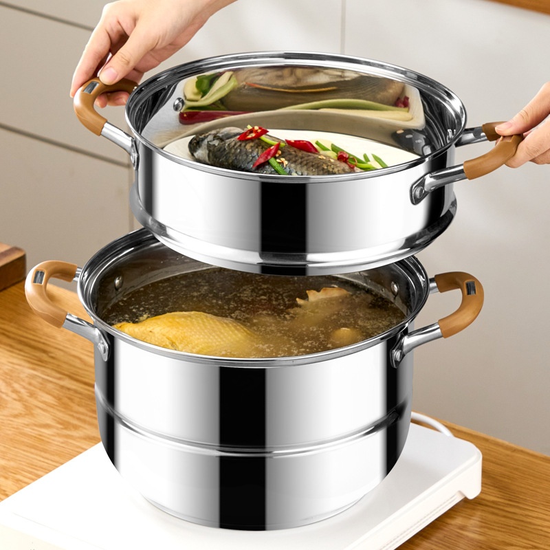 304 Steamer Household Timed Three-layer Stainless Steel Steaming Fish Steamed Buns Steamed Buns Induction Cooker Universal Soup Pot