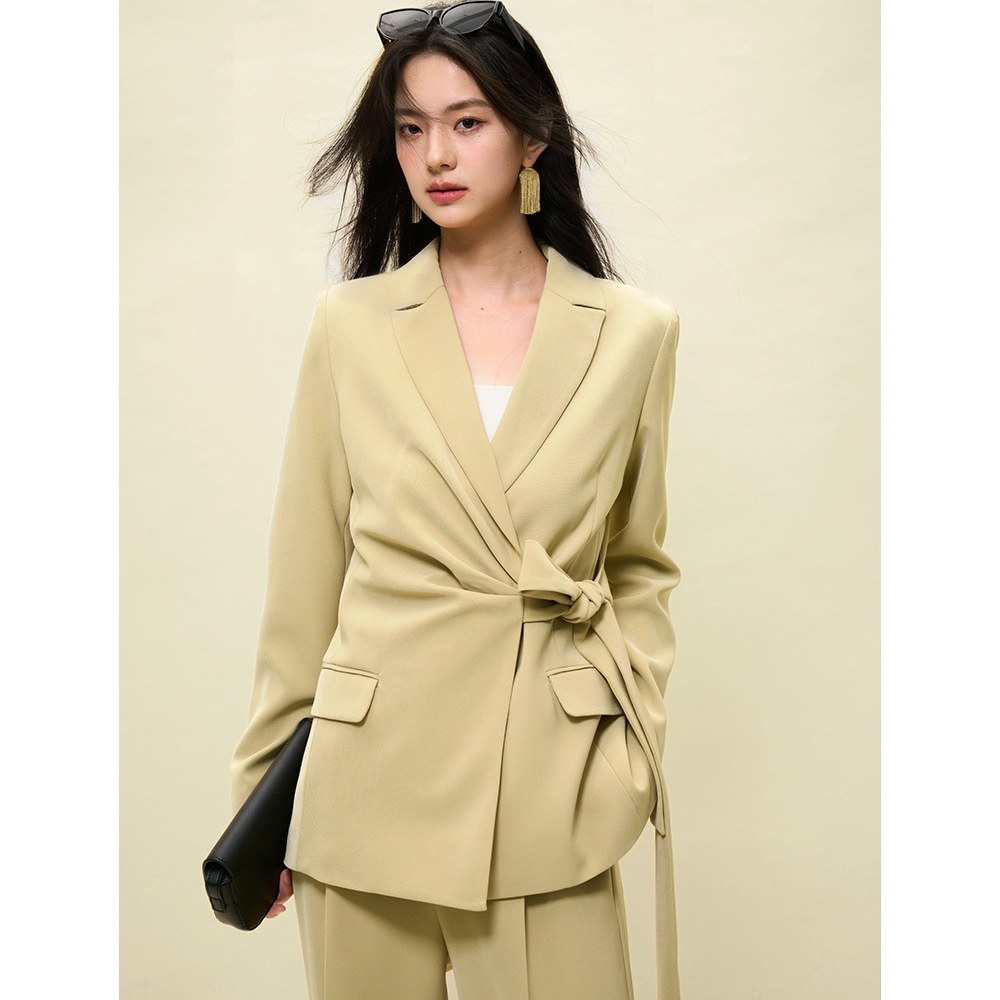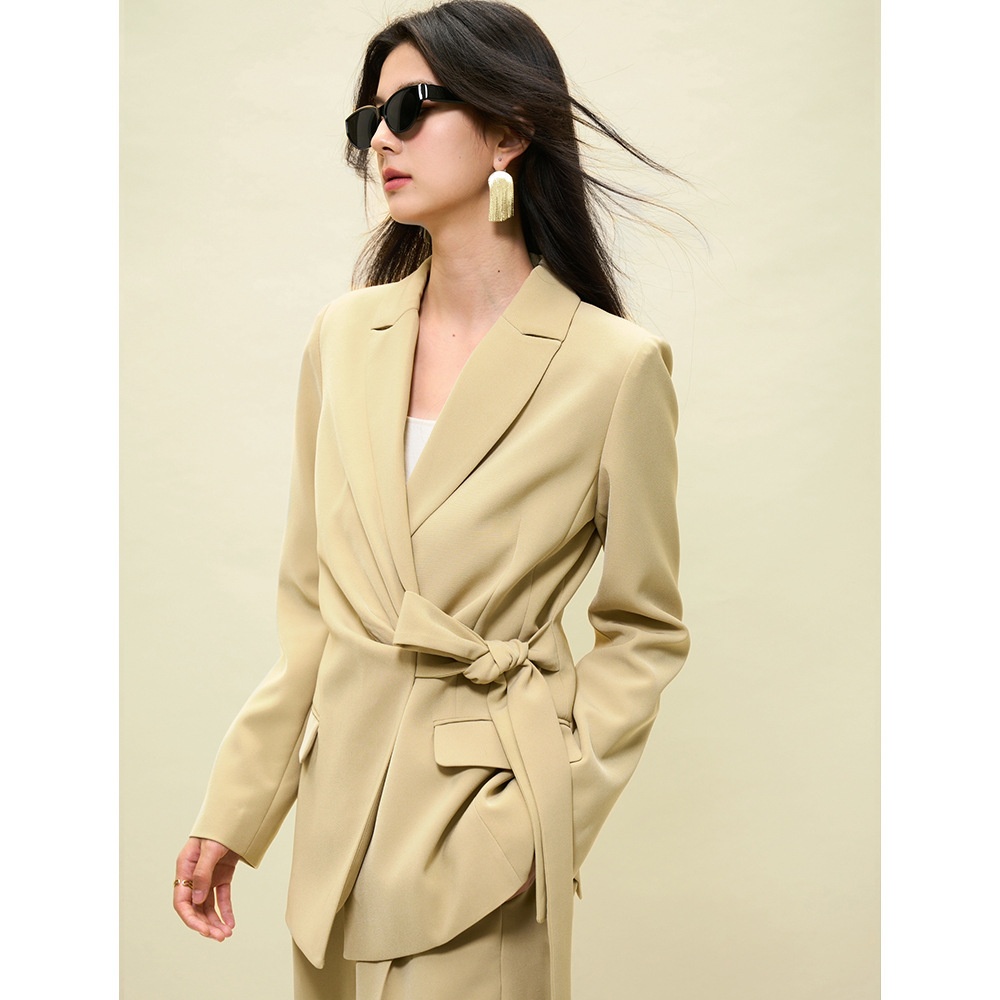 [Shengdu]23 Autumn Light Luxury High-end Asymmetrical Pleated Design Lace-up Slim Commuter Suit Jacket For Women