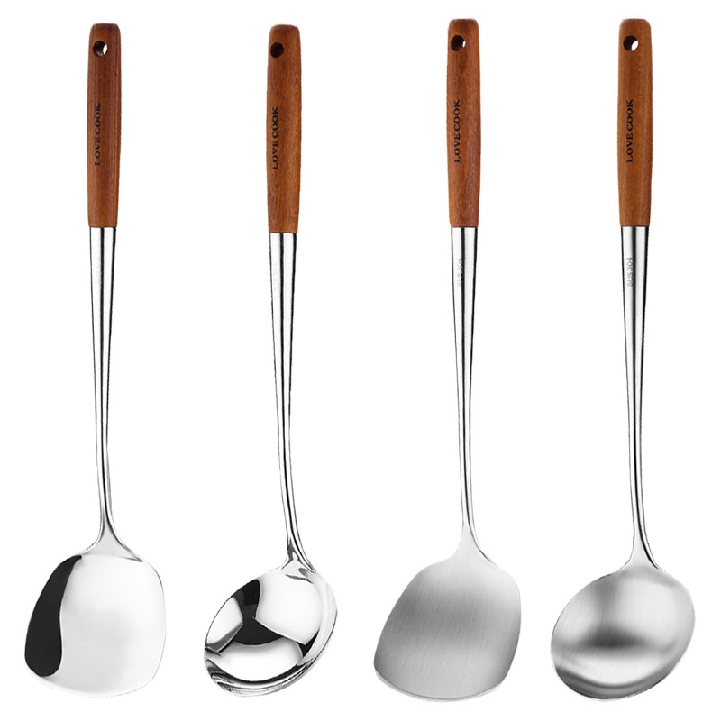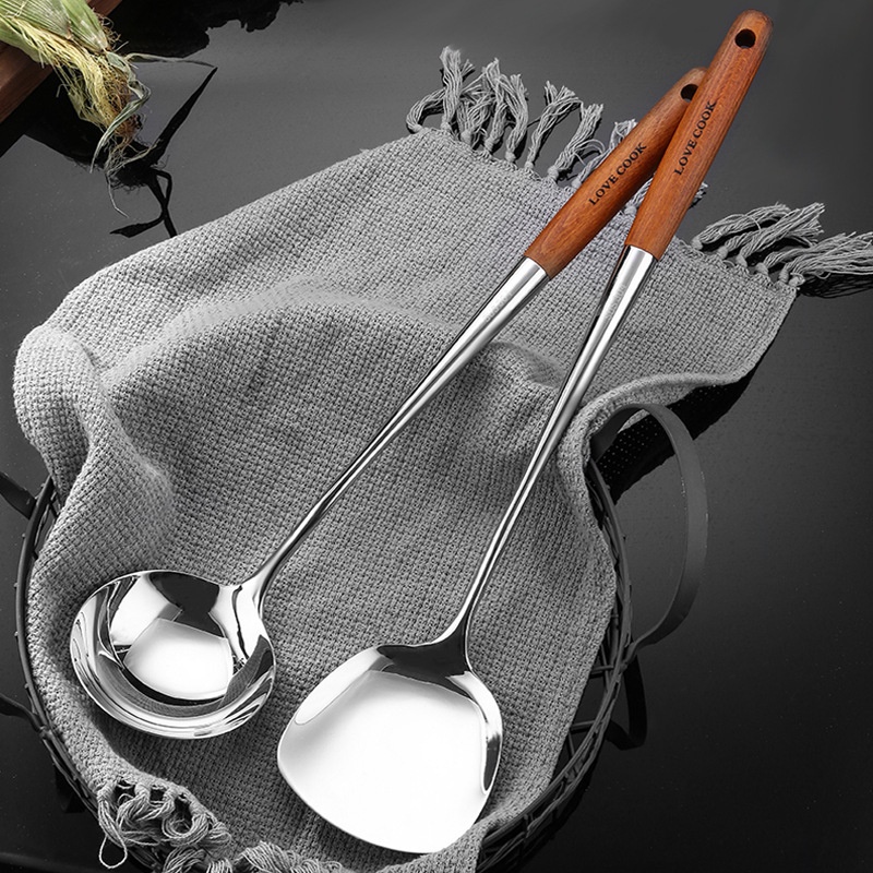 304 Stainless Steel Wooden Handle Spatula Kitchen Utensils Rosewood Handle Household Spatula Set Frying Spatula Kitchen Utensils Hot Pot Colander
