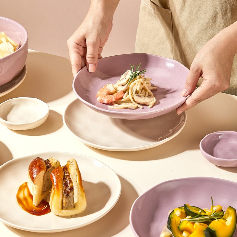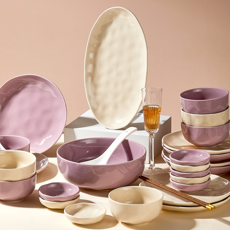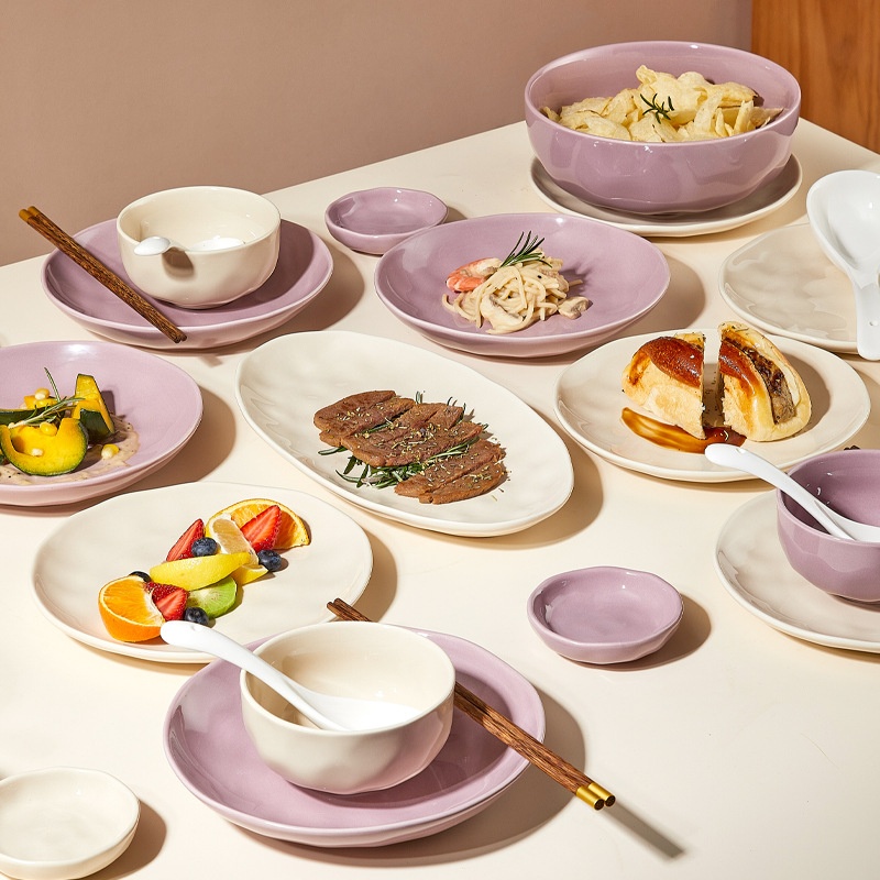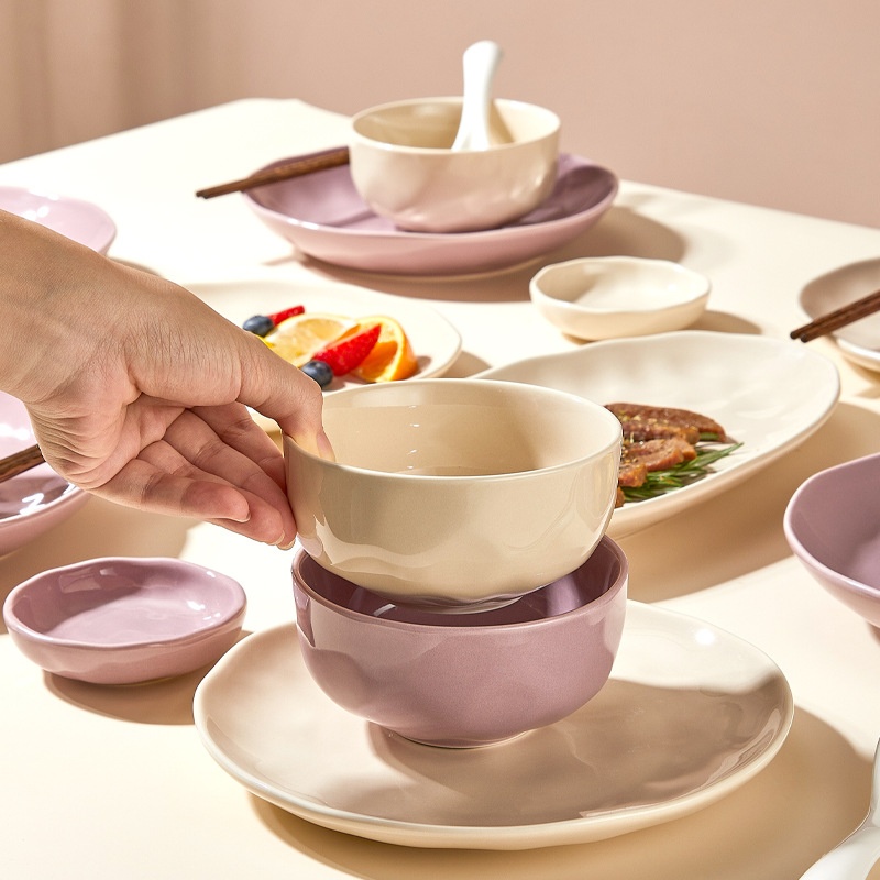 Ceramic Tableware Set Household Simple Plates,Bowls,Dishes,Enamel Underglaze Colored Bowls,Spoons,Cream Style Bowls And Plates Combination