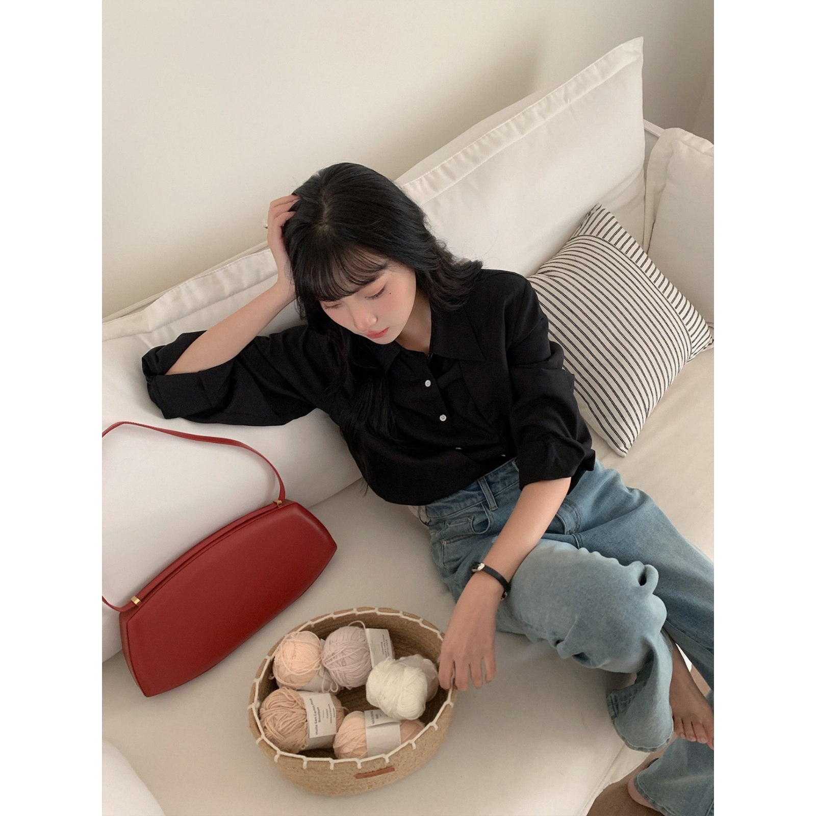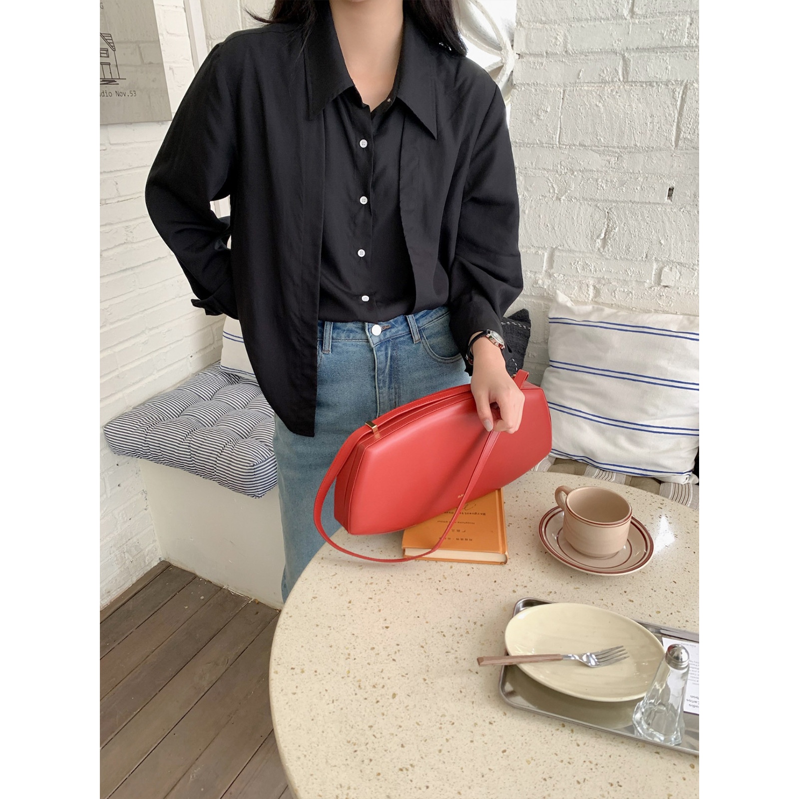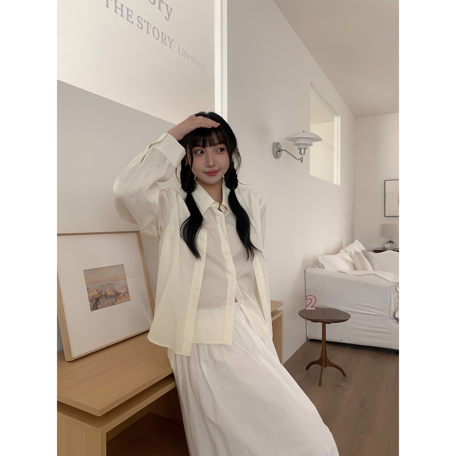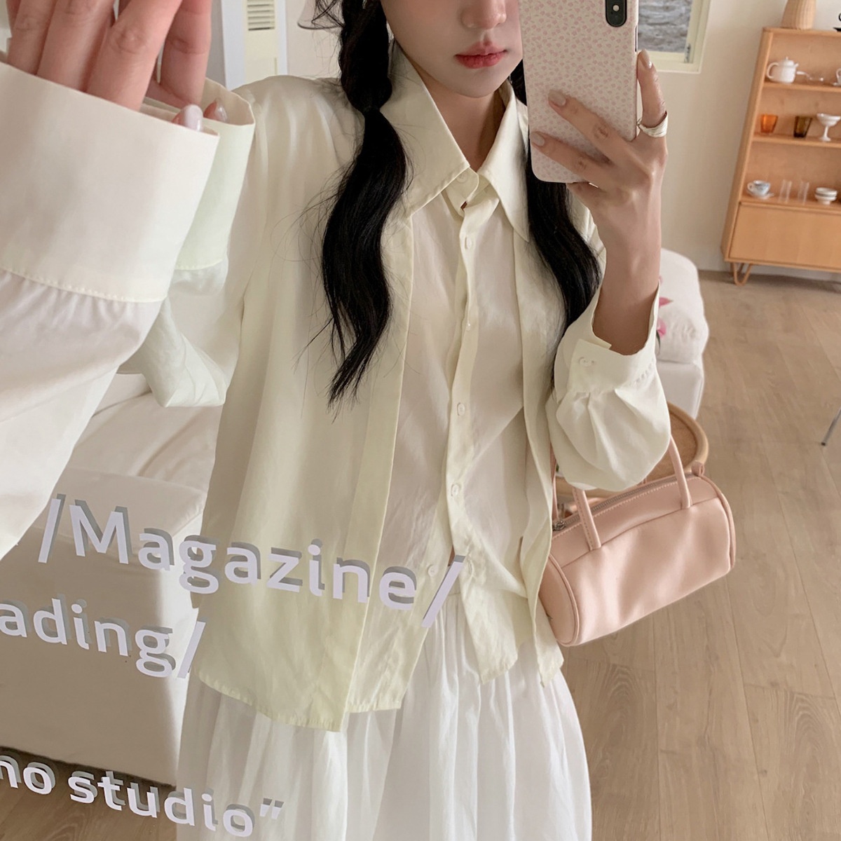 [No Refund Or Exchange]Fake Two-piece Long-sleeved Shirt Outerwear Women's Spring Women's Tops Design Tencel Shirt