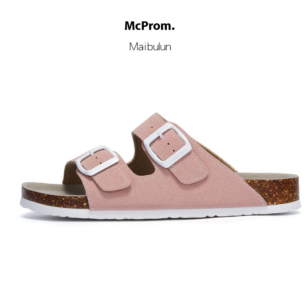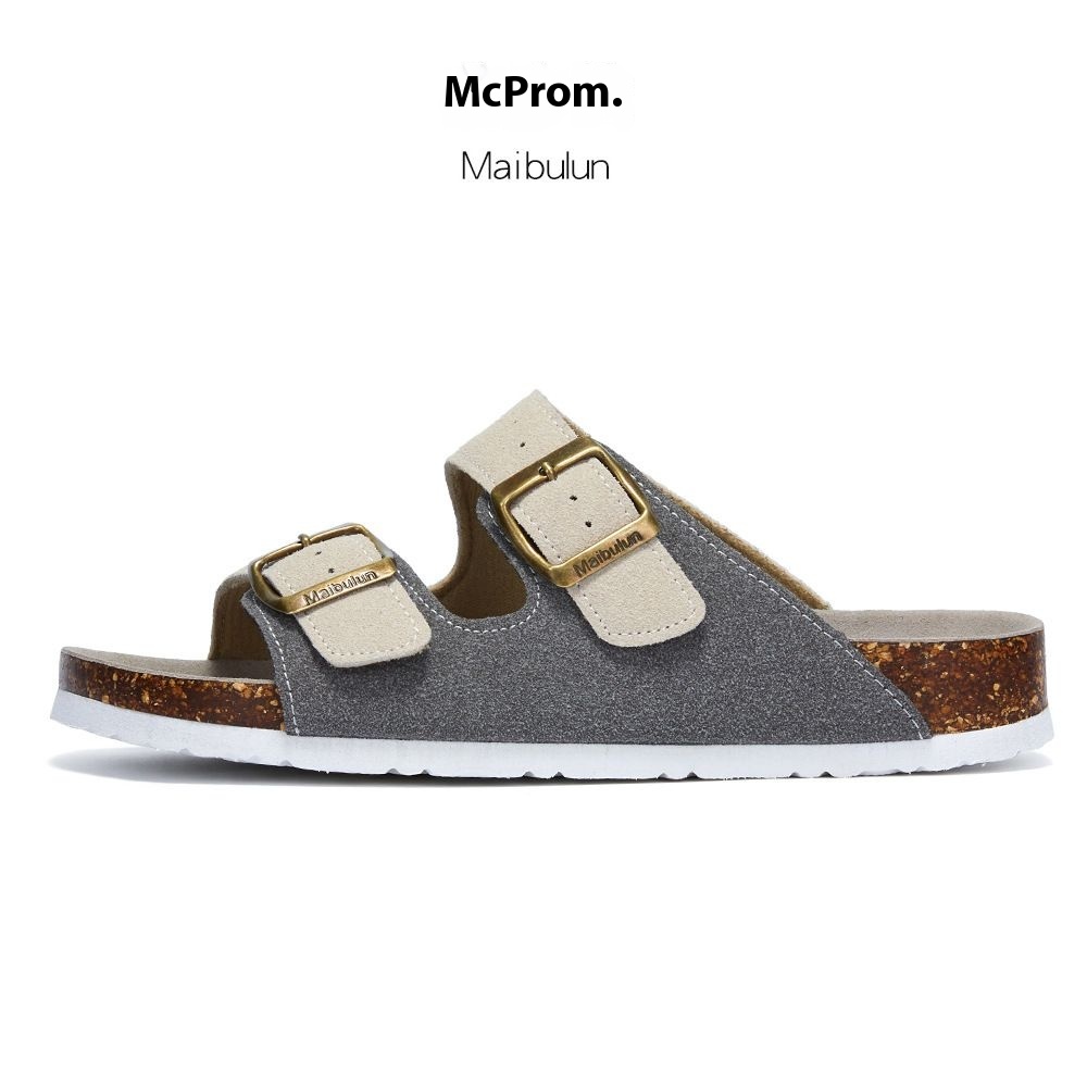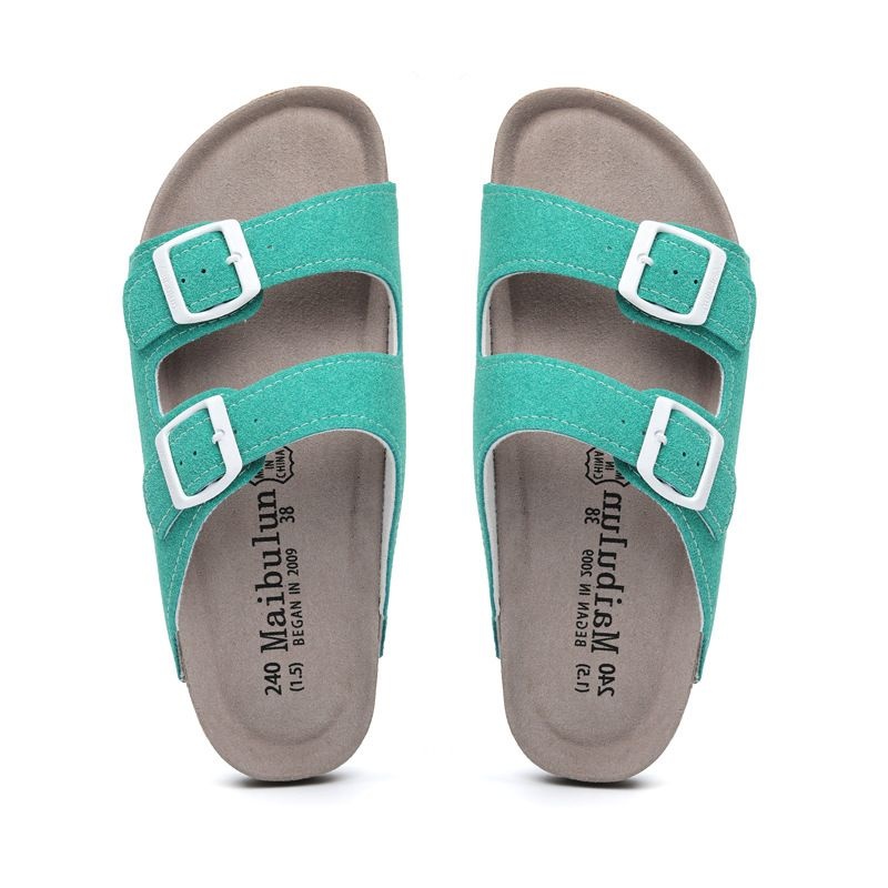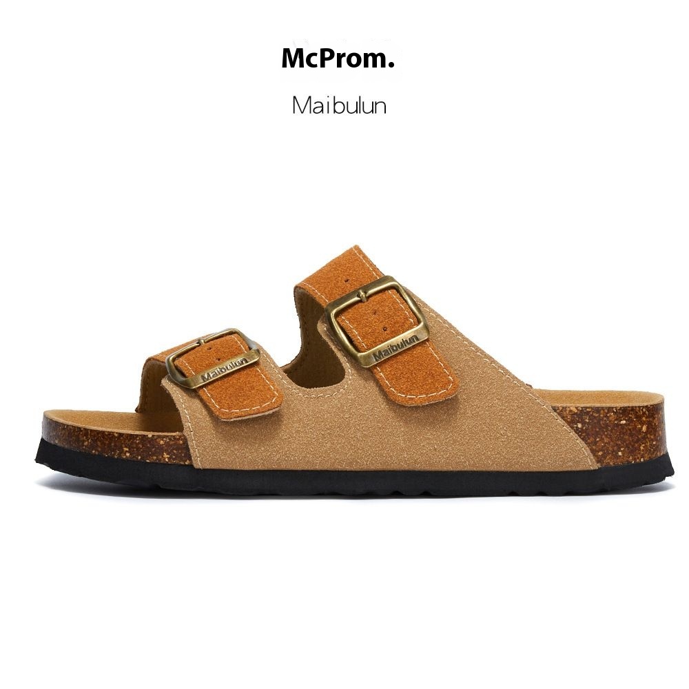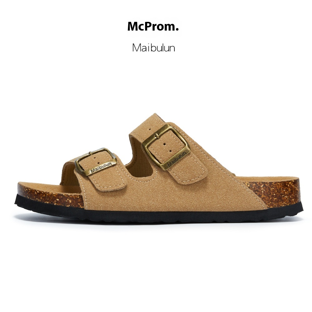 Mc Brun Flat Non-slip Cork Slippers For Men And Women,Beach Outdoor Home,One-word Frosted Leather Summer