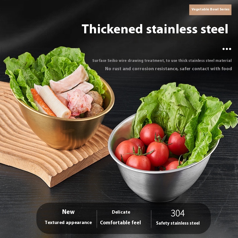 Stainless Steel Vegetable Bucket Golden Lettuce Bucket Korean Bowl Buffet Salad Bowl Seasoning Oblique Bowl Hot Pot Restaurant Soup Bowl