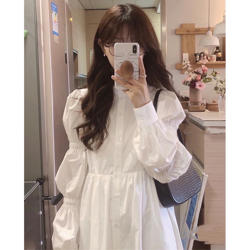 Gentle Temperament Dress Spring And Autumn Design A-line Shirt Long Skirt College Style Baby Doll Skirt
